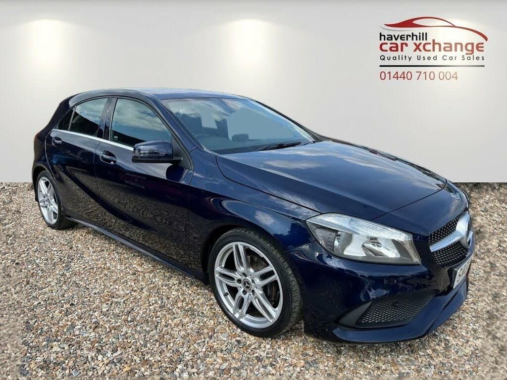 PRIVATE NUMVBER PLATE INCLUDED+ 45,861 MILES+MEDIA INTERFACE+AIR-CONDITIONING+HALF LEATHER UPHOLSTERY+AUTOMATIC HEADLIGHTS+RAIN-SENSING WINDSCREEN WIPERS+PARKING ASSISTANCE+METALLIC 'CAVANSITE BLUE' PAINT+18 IINCH 5-TWIN-SPOKE ALLOY WHEELS. At Haverhill Car Xchange we would like to offer you our LOW MILEAGE Mercedes-Benz A-Class AMG Line Hatchback which has been finished in a metallic 'Cavansite Blue' paint, luxurious Black Artico Leather-Dinamica Microfibre cloth upholstery with Red Stitching. Specification Includes an 8 Inch Media Display, Media Interface, Audio 20 Radio-CD Player with MP3 Compatibility, Smartphone Integration, Mercedes Connect Me, Air-Conditioning, Cruise Control with Speed Limiter, Front and Rear Electric Windows, Body Coloured Body Styling Side Skirts, Body Coloured Door Mirrors, Body Coloured Door Handles, Direction Indicators with Lane Change Function, Automatic Headlight Control, Halogen Headlight's, LED High Level Third Break Light, Part LED Tail Lights, Rear Fog Lights, Rain-Sensing Windscreen Wipers, Ambient Lighting, Brushed Stainless Steel Sports Pedals with Rubber Studs, Parking Assistance, 18 Inch Alloy Wheels, Electric Parking Break, ABS Breaking System, Alarm, Immobiliser, Remote Central Locking and ISOFIX Anchorage Points for Child Seats. *** WE ARE OPEN 7 DAYS A WEEK *** ** UPTO 100 CARS IN STOCK **