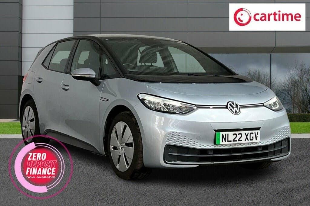 The Volkswagen ID.3 is an all-electric compact car produced by Volkswagen. It represents VW's entry into the electric vehicle market and has since proven to become a highly demanded car since launch. Our example, comes finished in the gorgeous Scale Silver over a Black Painted Roof and the optional 18-Inch Aero Steel Wheels which help add further impressive looks to the exterior of this already eye catching electric hatchback. The features on this vehicle include; Front and Rear Parking Sensors, Wireless App Connect for Mobile Integrated Android Auto/Apple CarPlay, LED Headlights with Reflector Technology, Heated Front Seats, Adaptive Cruise Control, Lane Assist and much more. In summary, the Volkswagen ID.3 is generally considered a good electric car, offering a blend of range, performance as well as comfort. Lifetime warranty available on this car, plus a £1,000 finance contribution when you part exchange. Voted UK Car Supermarket of the Year two years running, we offer 0% finance, part exchange, and lifetime warranties across our entire range. Every car is thoroughly inspected before sale and comes with a full history check, so you can buy with complete peace of mind. Buy with confidence on our best finance rates. Proud winners of the CarGurus Top-Rated Dealer 2022 and the MotoNovo Extra Mile Award.