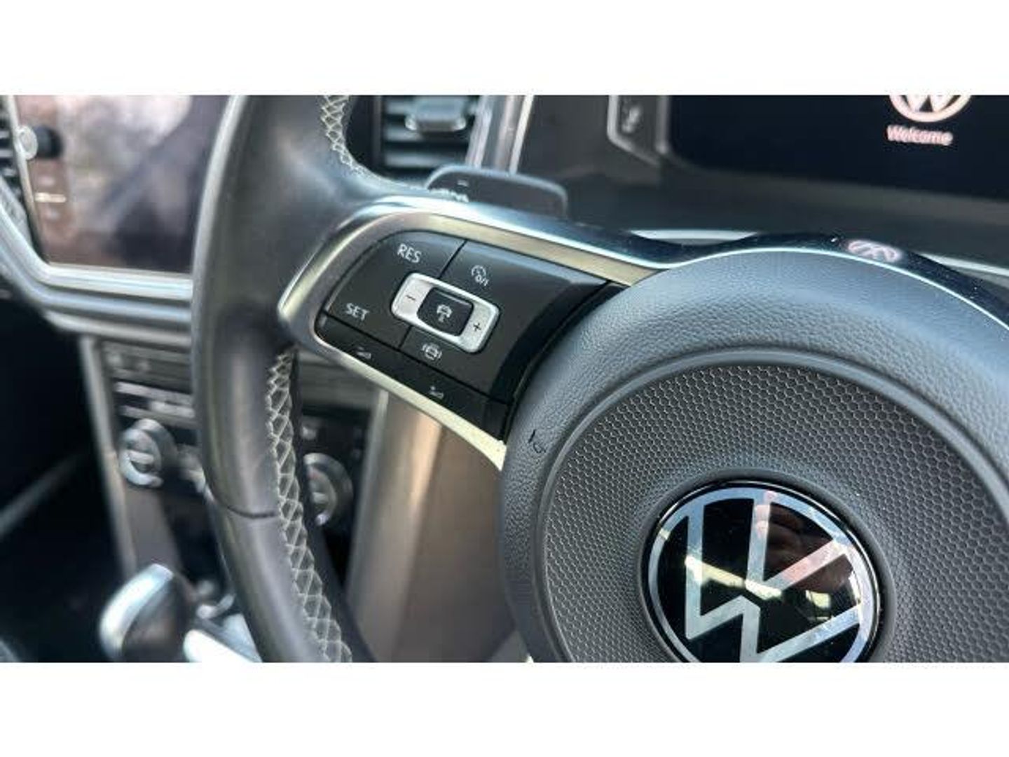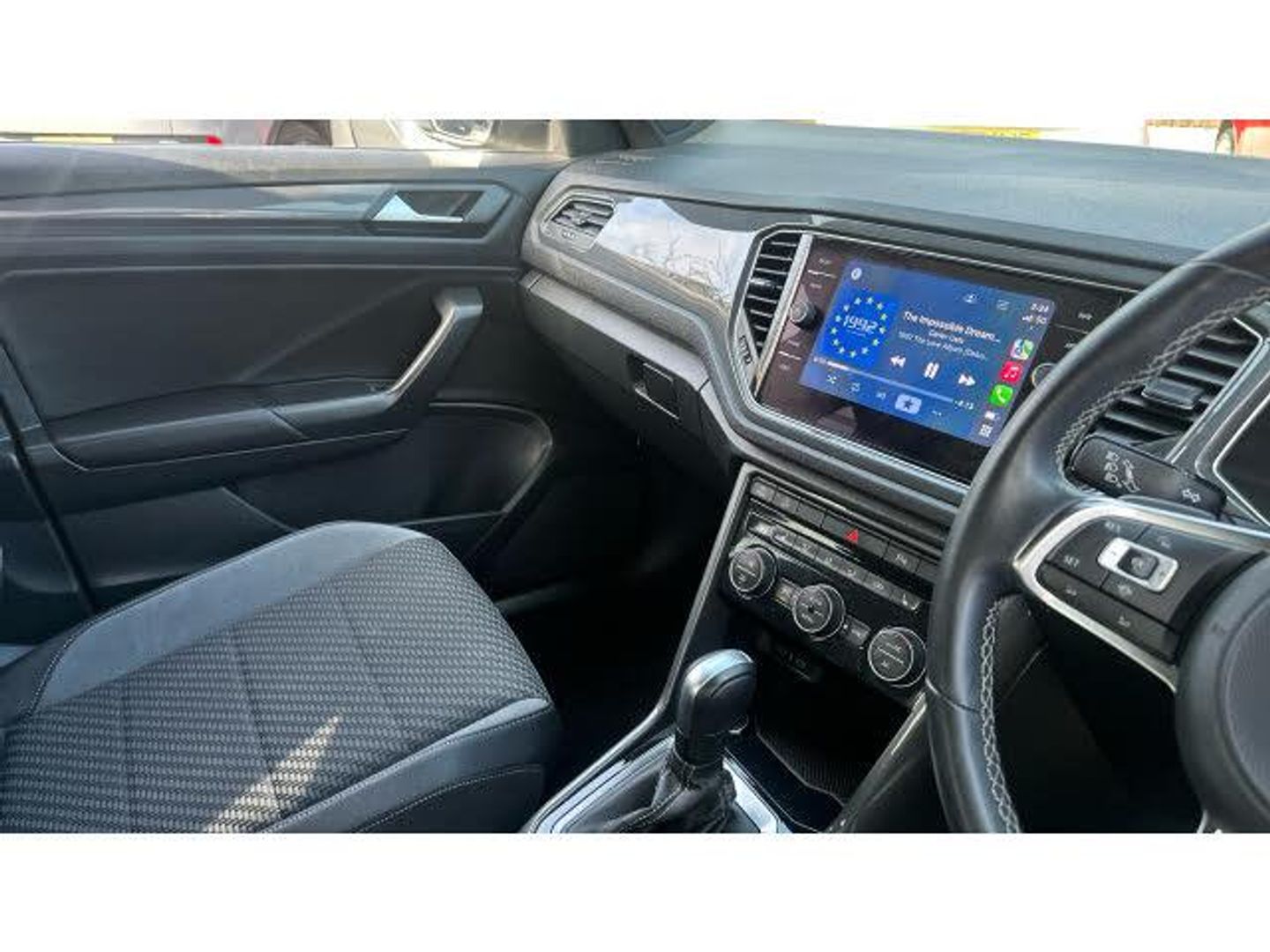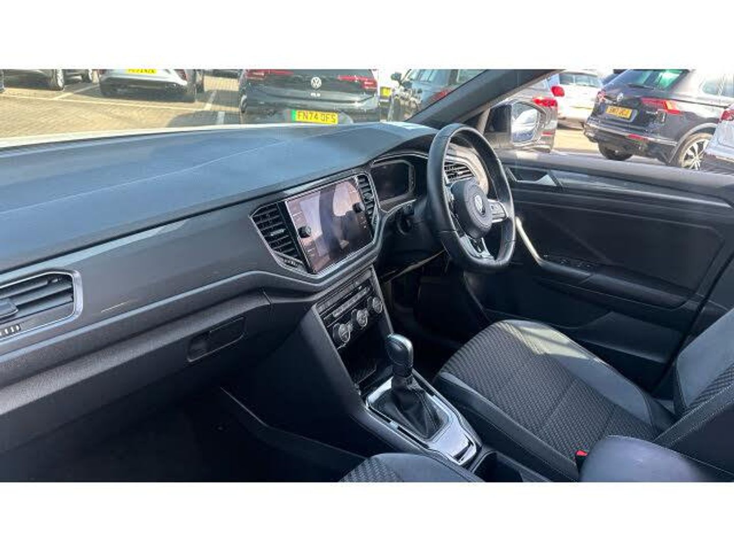 Front + rear carpet mats, Heated rear window, Volkswagen roadside assistance, Rear shock absorption for sports version, Voice activation, Adaptive cruise control, Dusk sensor, Multifunction computer with visual gear change recommendation for fuel consumption, Body colour door mirrors with integrated indicators, Shadow steel matt decorative inserts in dash and door panel, Battery regeneration during braking, MDI multi device interface, Fully galvanised body, Door mirror puddle lights, Climate control - 2 zone electronic air conditioning with automatic air recirculation and allergy filter, Storage compartment in rear doors, Instrument lighting, white adjustable panel illumination, R line styling pack - T-Roc, Tyre pressure loss indicator, Height adjustable front seats, Alarm with Remote Central Locking and Interior Protection, Sunvisors with illuminated vanity mirrors, 19" Suzuka alloy wheels with low rolling resistance tyres and anti wheel bolts