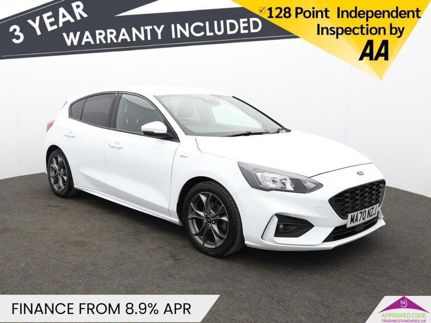 Oakwood Motor Company are delighted to offer this dynamic Ford Focus 1.5 EcoBlue ST-Line Hatchback finished in the crisp Frozen White. With sporty styling and an impressive range of features, this low mileage example combines efficiency, performance and practicality in a striking package. Inside, the Focus benefits from the Ford SYNC3 DAB Radio with a floating 6.5-inch touchscreen, Bluetooth connectivity, and the upgraded SYNC3 DAB Navigation System. The cabin is finished with View Cloth seats in Charcoal Black with red stitching, a flat-bottom leather-trimmed steering wheel, and a black woven headliner, creating a modern and sporty atmosphere. Exterior highlights include 17-inch Rock Metallic alloy wheels, a full ST-Line bodystyling kit with unique upper and lower grilles, and a large body-coloured rear spoiler. Practical features such as a Quickclear heated windscreen, heated electric door mirrors, and LED daytime running lights enhance daily usability and comfort. Offering sports-tuned suspension, cruise control with speed limiter, selectable drive modes, lane keeping aid, and ISOFIX child seat mounting points, this Focus delivers an engaging yet safe driving experience. Call our team today to arrange your viewing or test drive! Oakwood Motor Company are an established family run dealership, home of the best used cars in Bury! We have hundreds of cars currently in stock from all your favourite brands including our specialist selection of Audi VW Group vehicles. Our fantastic rates are available on both HP and PCP finance, and we have extended warranties available for up to 3 years for complete peace of mind. Our experienced sales team are on hand to help you every step of the way, so give us a call today to reserve your new car with a refundable £100 deposit. Visit our used car dealership in Bury! We take all reasonable steps to ensure the accuracy of the information supplied in our advertising materials, however on occasion errors may occur. Images used are for illustrative purposes only. Please ensure you take the time to fully inspect your vehicle for specification/features which are important to you, and raise any queries with your Sales Executive.