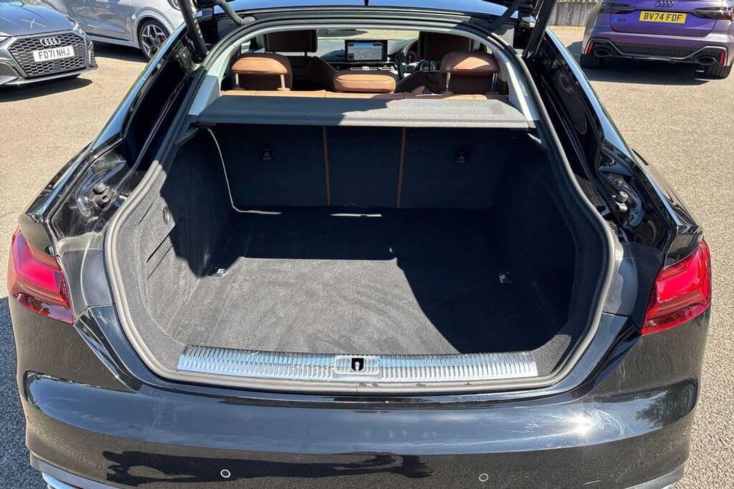 Technology Pack Pro, Tech package Low for Great Britain (WB4), Ambient Lighting package plus (QQ2), Audi phone box Light (9ZV), Bang & Olufsen 3D Premium sound system (9VS), Convenience key with Safelock (4F2), Exterior mirrors, electrically adjustable, heated and folding, automatic. dimming, with memory function (6XL), Front seats, electrically adjustable with memory function for the driver seat (3L4), Head-Up Display (KS1), LED rear lights plus (8VM), Matrix LED headlights with dynamic turn signal (8IY), Matrix LED headlights with dynamic turn signal (8G4), Panoramic glass roof (3FB), Park assist with parking system plus (7X5), Surround view cameras (KA6), With multifunction camera (QK1)