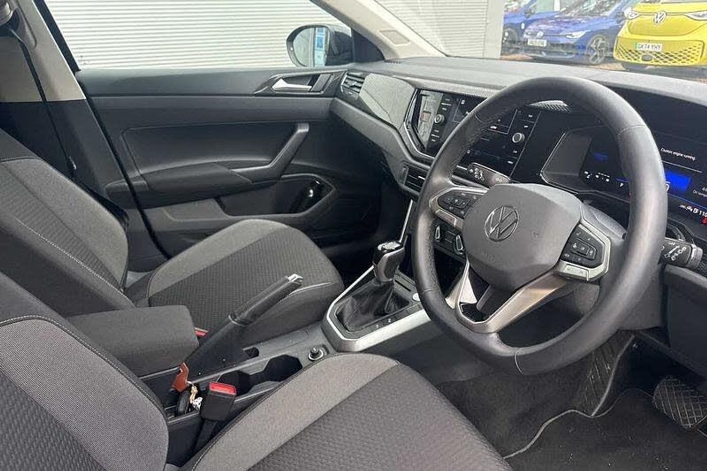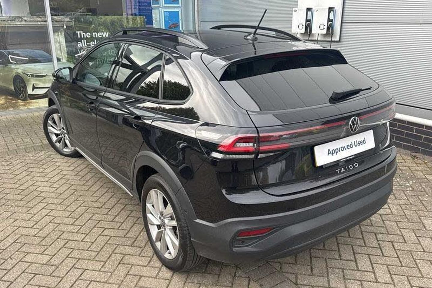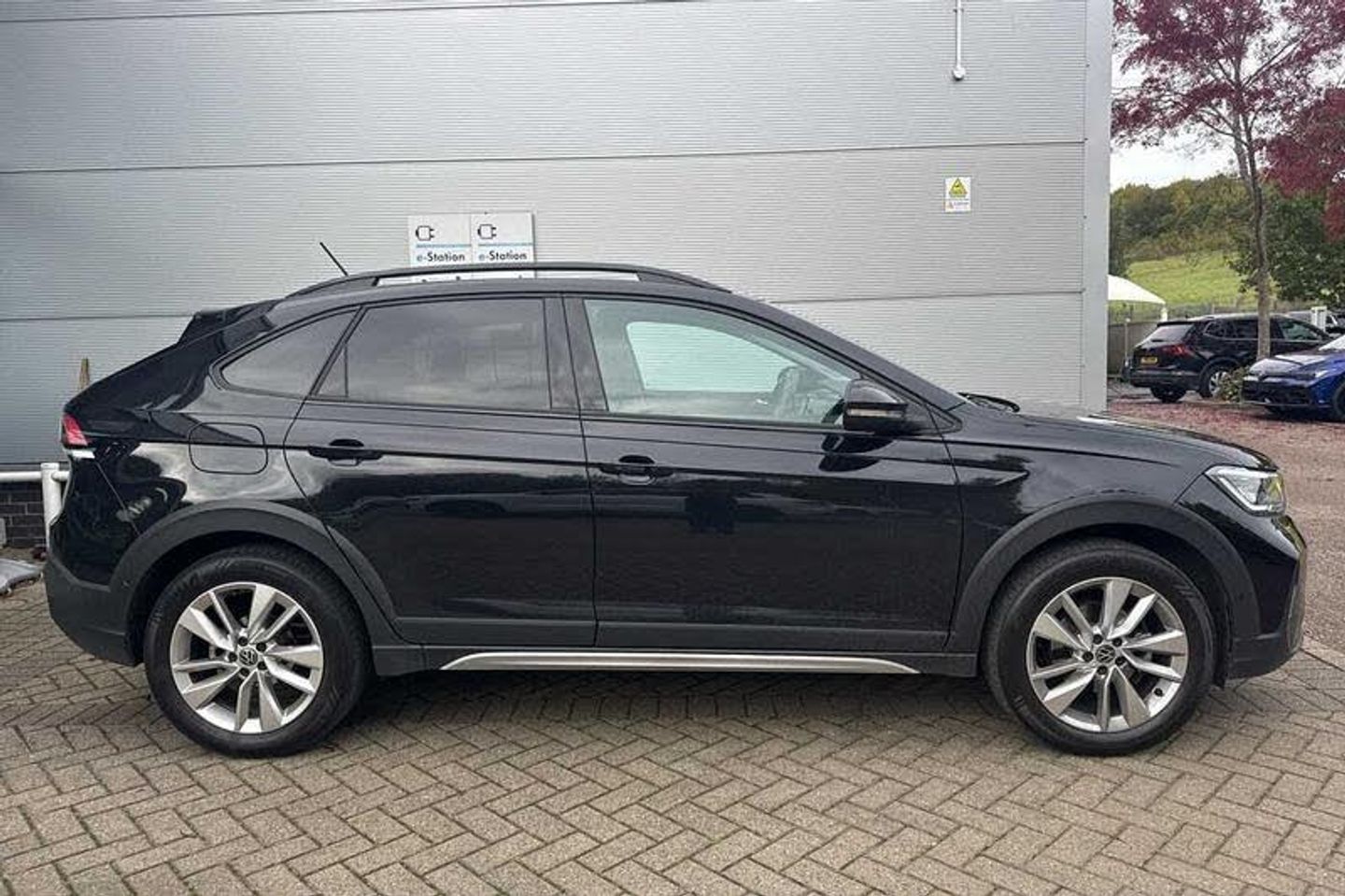 Exterior Features, Metallic paint, Paint - Metallic, Metallic - Deep black pearl, Exterior Features, Electric windows, Heat insulating glass windscreen, Rear wash/wipe with intermittent wipe setting, Side windows in heat-insulating glass, from B-pillar and rear window dark tinted, Body coloured bumpers, Body coloured exterior mirror housings and door handles, External USB type C socket and charging sockets, Rear side wing doors, Ambient lighting with logo projection, LED rear combination lamp, LED third brake light, Rear fog light on one side, reversing light on both sides, Safety, Electronic stability control, Front and rear disc brakes, Hill start assist, Adaptive cruise control, Advanced driver attention and drowsiness monitor, Dynamic road sign display, Power Steering, Rear view camera, Aspherical driver's exterior mirror, Left convex exterior mirror, Power folding adjustable/heated exterior mirrors and front passenger exterior mirror lowering function, 2 x 3-point seatbelts/outer rear seats with ECE label, 3-point seat belts in front with pretensioner and height adjustment, 3-point seatbelt for centre rear seat, Driver and front passenger airbag with front passenger airbag deactivation, Driver and front passenger safety-optimised head restraints, Extended and predictive pedestrian/ cyclist protection, Front curtain and side airbags with center airbag, Manual rear child locks, Single tone horn, Tyre pressure loss indicator, Interior Features, Black carpets, 'Slash/ Austin' Cloth upholstery, 12V socket in centre console, Ceramique headliner, Door and side trim panels in titan black, Front centre armrest, Handbrake lever handle in leather, Height and reach adjustable steering wheel, Leather trimmed gear knob, Leather wrapped multifunction steering wheel with paddle shift, Luggage compartment floor, Seat covers in titanium black, Storage compartment under front seats, Titanium black instrument panel, 2 front reading lights, Luggage compartment light, Sun visors with illuminated vanity mirrors, Audio / Communications, Wireless Charging including Bluetooth, WeConnect plus, Miscellaneous, e-Call (emergency call), Travel assist including emergency assist, Washer fluid level indicator, Start-stop system with battery regeneration (recuperation - energy recovery during braking), Trim, Black (slush) Dashboard, Lava stone black gloss/matt decorative inserts in dash and front door panels, 3 rear head restraints, 3 seat bench in 2nd row, Child seat anchor for child seat system i-Size, 2x top tether and child seat anchor in front on front passenger side, Driver and front passenger seat height adjustment, Lumbar support for driver's and front passengers seat, Single front passenger seat, Split folding backrest with centre armrest and unsplit rear seat bench, Packs, Chrome Package - Taigo, Drivers assistance package - Taigo, Light and sight pack - Taigo, Security, Anti-theft alarm system with interior monitoring, backup horn, and towing protection, Keyless locking and starting system keyless access with safelock, Wheels, Low rolling resistance tyres