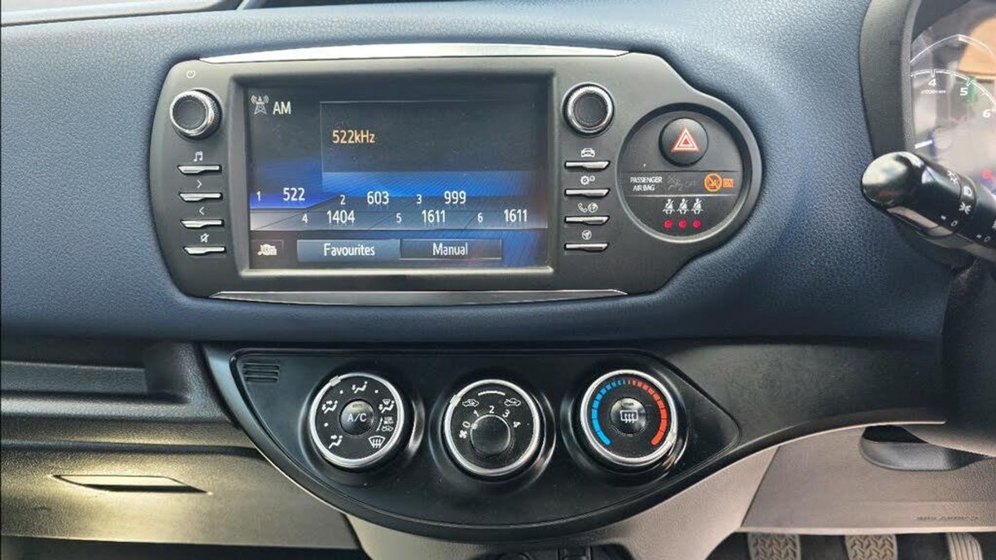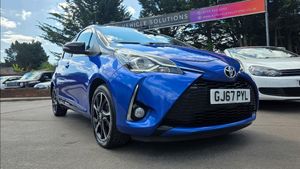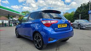 This 2017 Toyota Yaris 1.5 VVT-i Blue Bi-tone 5dr hatchback is a reliable and fuel-efficient car with 110000 miles on the clock. Powered by a petrol engine, this vehicle is ULEZ compliant and comes with an MOT until SEPT 2026. With 5 seats and 5 doors, it is spacious and practical for everyday use. The car boasts features such as a Bluetooth system, cruise control, external temperature gauge, fuel indicator with low-level warning, and lane departure warning system, making it a safe and convenient choice for any driver. Don't miss out on this well-maintained and stylish hatchback that is sure to provide a smooth and enjoyable driving experience.