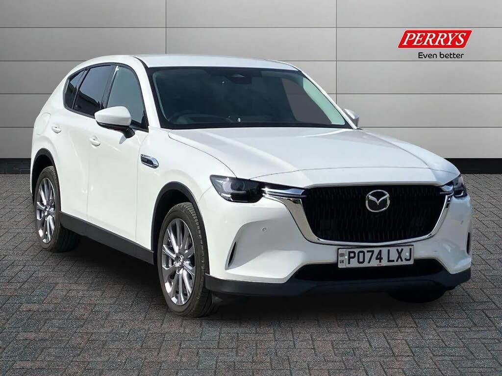 Emergency lane keeping with blind spot assist, Low washer fluid warning light,12.3" Colour entertainment centre display with mazda connect infotainment,12.3" TFT Colour display,Adjustable speed limiter,Blind spot assist,Blind spot monitoring with rear cross traffic alert,Cruise control,Distance alert system,Driver attention alert system,E-call with GPS,Emergency stop signalling system,Exit warning function,Front and rear parking sensors,Integrated bluetooth,Intelligent speed assist,Kinematic posture control,Lane keep assist system (LAS) with Lane departure warning system (LDWS),Mazda hybrid navigation system with european mapping,Multimedia Commander,PAS,Power lift gate with handsfree function,Power liftgate,Power start/stop button,Reversing camera with static guide lines,Speed alert,Traffic sign recognition enhanced with mandated excessive speed warning,Trip computer,Windscreen projected colour active driving display,Wireless apple car play/android Auto, Type 2 Mode 2 cable for AC charging via UK 3-pin plug,7.2 kw On board Charger,Mi-Drive (Normal, Sport, Off-road, Towing and EV mode),Type 2 Mode 3 cable for AC charging via home or public charge points,AM / FM / DAB radio with 8 speakers,Steering wheel mounted audio/bluetooth controls,USB-C inputs (x2 front and x2 rear),Auto dimming driver's door mirror,Automatic headlight levelling,B-pillar and C-pillar garnishes in gloss black finish,Body colour roof spoiler,Body coloured bumpers,Body coloured door mirrors,Chrome front side garish,Coming/leaving home lighting function,Dark plated headlight lense,Dusk sensing headlights,Electric front/rear windows with one touch auto up/down,Electrically adjustable, heated auto power folding door mirrors,Frameless auto dimming interior rear view mirror,Front kodo turn signal,Front wiper de-icer,Gloss black bar type front grille with bright finish signature wing,Headlight washers,High beam control,LED 3rd brake light,LED headlamps,LED rear signature combination lamps,Piano black window surrounds,Rain sensing front wipers with adjustable sensitivity and speed,Rear side wing doors,Rear wiper,Roof pillars and roof lining finished in lighter colour to soften the overall look,Satin black lower bumper, wheel arch and side mouldings,Signature LED daytime running lights,Silver decoration panel,12v power outlet - front,12V socket in boot,3 height adjustable rear headrests,3 seat bench in 2nd row,40/20/40 split folding rear seats with quick levers in the boot,Cargo net,Chrome interior trim accents with steering wheel centre bezel, surround of engine start / stop button and glove box handle,Door panel trim vinyl leather with armrest,Driver and front passenger two rear grab handles with rear coat hooks,Driver and front passenger visors with covered vanity mirror and driver ticket holder,Driver, front passenger and two rear door pockets,Driver/passenger front seatback pockets,Dual zone climate control air conditioning with rear air vents,Featuring black vinyl leather dashboard trim with titanium coloured accents,Folding rear centre armrest with two cup holders,Front and rear signature illumination,Front centre storage with two cupholders,Front down lamp with front and rear foot lamps,Front headrests,Glovebox illumination,Heated front seats with 3 stage setting,Heated leather wrapped steering wheel,ISOFIX child seat anchorage points attached on outer rear seats,Karakuri tonneau cover,Leather upholstery,Leather wrapped gear shift knob,LED illumination luggage compartment,Manual telescopic and tilt adjustment steering wheel,Paddle shift,Practical and spacious front centre armrest storage,Rear seat recline function for rear passenger comfort,Remote fold down rear seats,Roof lining (ceiling and pillars) - Grey,Roof mounted sunglasses holder,Single front passenger seat,Comfort Pack - CX-60,3 point ELR front seat belts x2 with pretensioners,3 point ELR rear seat belts,Active bonnet,Anti-lock braking system (ABS),Drivers knee airbag,DSC - Dynamic Stability Control,Electronic parking brake with auto disengage function and auto hold function,Front and rear curtain airbags,Front dual stage driver and single stage front passenger airbags,Front passenger airbag cut-off switch,Front side airbags,Front smart city brake support,Hill decent control,Hill launch assist,Manual rear child locks,Seatbelt reminder for driver/front passenger and rear seats,Traction control,Tyre pressure monitoring system (TPMS),Remote central locking with deadlocking and automatic door lock when driving,Smart keyless entry,Thatcham accredited alarm and immobiliser,Mesh metal film centre console panel,Emergency tyre repair kit,20in Alloy Wheels - Silver Metallic,Comfort Pack,Rhodium White