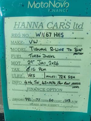 VW TIGUAN 2ltr TDi 4-MOTION R-LINE, 2017 REG(67),POLAR WHITE PAINTWORK,72K MILES FROM NEW WITH FULL SERVICE HISTORY,20 ALLOY WHEELS,FULL GLASS PAN-ROOF,4 MOTION MODEL(4x4),2 KEYS SUPPLIED,AUTOMATIC GEARBOX,VIRTUAL DASH,EXCELLANT CONDITION,POWER TAILGATE,FACTORY SAT-NAV + MORE, FINANCE AVAILABLE FROM 103 P/WEEK (995 deposit), AUTOGAURD WARRANTY AVAILABLE, TRADE-IN WELCOME