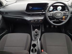 10.25" touchscreen + navigation, 2nd Gen eCall, 8" Touchscreen DAB Radio with android auto and apple carplay, Cruise control + speed limiter, Forward collision assist with car, pedestrian and cycle detection, Intelligent speed assist, Intelligent speed limit warning, Lane follow assist, Lane keep assist, PAS, Rear parking sensor, Rear view camera with dynamic guidelines, USB C port front, Automatic headlights with dusk sensor, Electric adjustable heated door mirrors, Front grille mesh pattern design, High beam assist, LED 3rd brake light, LED daytime running lights, LED Headlights, LED taillights, Rain sensor, Rear side wing doors, Rear wiper, Repositioned flat metal hyundai emblem, Trailer wiring, 3 seat bench in 2nd row, Adjustable head restraints, Air conditioning, Cloth upholstery, Floor mats, Leather steering wheel, Single front passenger seat, 3x3 point rear seatbelts, ABS with front and rear diagonally split, Autonomous emergency braking, Child locks on rear doors, Front ventilated disc brakes, Rear solid disc brakes, Tyre pressure monitoring system, 16" alloy wheels, Tyre repair kit