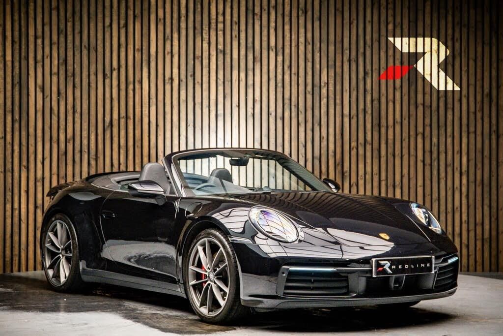 2 USB-C Ports in Centre Console Main Storage Compartment Lid - 12V Socket in Passenger Footwell, 20in Front 21in Rear Alloy Wheels - Carrera S, Ascending Centre Console with Storage Compartment, Auto-Deployed Rear Spoiler, Auto-Deploying Roll-Over Protection System, Automatic Headlight Activation including Welcome Home Lighting, Clothes Hooks on Seat Backrests, Convertible Top Colour - Black, Cruise Control, Dashboard Trim Strip - Centre Console Trim and Door Panel Trim Strips in Diamar Darksilver, Digital Display for Selected Gear in Rev Counter, Digital Radio, Door Sill Guards - Model Designation Logo, EU eCall Emergency System, Electric Parking Brake, Electrically Operated Rear Side Windows, Electrically Operated, Fully Automatic Fabric Roof, Electromechanical Power Steering with Variable Steering Ratio and Steering Pulse Generator, Embossed Leather on Front Seat Centres - Front Side Bolsters - Front Seat Head Restraints, Engine Compartment Cover Grille with Vertical Slats in Black High-Gloss, Engine Immobiliser, Exhaust System with 2 Dual-Tube Tailpipe Trims Fixed to the Bumper in High Gloss Silver Stainless Steel, Exterior Mirrors on Door Waist Rails - Electrically Adjustable and Heatable - Aspherical on Drivers Side, Floor Mats, Full-Size Airbags for Driver and Front Passenger, Glove Compartment - Lockable and Storage Compartment in Each Door, Green Tinted Thermally Insulated Glass, Heated Rear Screen, Hood Lining in Black Fabric, ISOFIX Child Seat Mounting Points on Front Passenger Seat, Illuminated Vanity Mirrors in Sun Visors - Driver and Passenger Sides, Instrument Cluster with Central Analogue Rev Counter - Two 7in TFT Display, Integral Electrically Powered Wind Deflector, Intelligent Lightweight Construction in Aluminium-Steel-Composite Construction, Interior LED Lighting - Reading Lights - Orientation - Ignition Lock - Luggage Compartment - Footwell - Glove Compartment and Door Lighting, Keyless Go, LED Auxiliary Lights Units in Front Apron with Position Lights - Direction Indicators and Side Indicators, LED Main Headlights - Daytime Running Lights with 4-Point LED Spotlights, Luggage Compartment - Front, McPherson-Strut Suspension with Anti-Roll Bar at Front, Model Designation on Rear Trim in Light Silver, Multi-Link Suspension with Anti-Roll Bar at Rear, Multifunction Steering Wheel with Shift Paddles and Manual Height-Reach Adjustment, PASM - Porsche Active Suspension Management, PCM - Porsche Communication Management - Include Navigation, PDK Gear Selector with Automatic Mode - Manual Gear Selection via Shift Paddles on the Steering Wheel, PORSCHE Lettering Integrated in Taillight Strip, PTV Plus - Porsche Torque Vectoring Plus, PVTS - Porsche Vehicle Tracking System, ParkAssist - Front and Rear with Reversing Camera, Particle-Pollen Filter with Active Carbon Filter, Porsche Connect Online Navigation, Porsche Side Impact Protection - POSIP, Porsche Stability Management - PSM Including ABS with Extended Brake Functions, Porsche WET Mode, Power Windows with One-Touch Operation and Door Seal Protection Function, Remote Control for Central Locking and Luggage Compartment Lid Release, Retractable Door Handles, SPORT Button to Activate Dynamic Driving Setting for Engine and Transmission, Seats - Heated Front, Seats - Split-Folding Rear, Side Air Intakes at the Front with Active Cooling Air Flaps and Air Blades, Side Skirt Trim in Black, Six-Piston Closed Type Aluminium Monobloc Fixed Brake Calipers at Front and Four-Piston Closed Type Aluminium Monobloc Fixed Brake Calipers at Rear - Brake Calipers with Red Finish, Smartphone Integration - Apple Carplay and Android Auto, Smooth-Finish Leather on Steering Wheel Rim - Door Handles - Door Panel Armrests and Centre Console Storage Compartment Lid, Sound Package Plus, Sports Seats - 4-Way Electric, Sports Seats in Front with Electric Backrest Angle - Seat Height Adjustment - Manual Adjustment of Fore/Aft Position, Stationary Management with HOLD Function, Storage Compar
