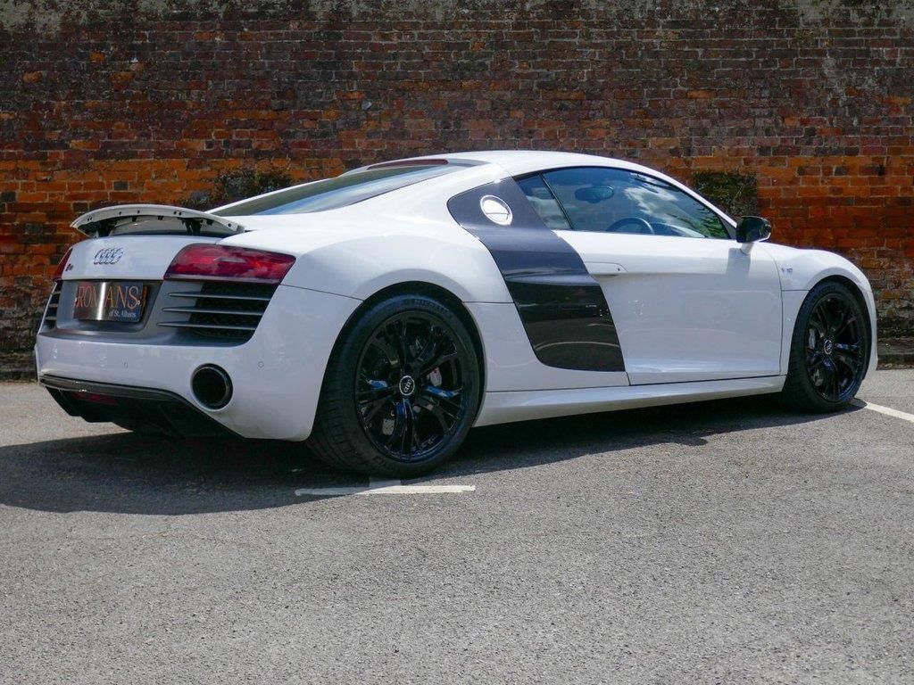 DEPOSIT TAKEN-SIMILAR WANTED! Romans of St Albans are delighted to present this Ibis White Audi R8 V10 Plus with Black Leather interior. Full Audi Service History. Optional extras list to include: Engine cover in carbon sigma, Sideblade Carbon Sigma, Bang and Olufsen Sound System, Carbon Sigma inlays and much more! ...FINANCE AVAILABLE. ULEZ COMPLIANT. FREE ON-SITE PARKING (ASK FOR DETAILS.) Romans after care package includes: Romans warranty for 6 months (12,24 & 36 months are available), Main dealer cover available, Free breakdown cover for warranty duration, Full Romans service prior to delivery, 84 point vehicle inspection, 12 months MOT, Free Life time MOT when servicing with us (ask for details), Total value of package: £2000 - ALL INCLUSIVE IN THE PRICE. All of our clients have the added peace of mind that we have our own workshop facilities with free courtesy cars. Part Exchange very welcome, nationwide delivery also available. To avoid a wasted journey we highly recommend making an appointment, so call us now to get yours booked! Romans provide the highest of quality vehicles, and have at least 80 cars in stock at any one time. This means not all cars can be kept on site. This will also allow us to give you our fully undivided attention when viewing the vehicle you are interested in, WE ARE LOOKING TO BUY YOUR TOP SPEC, LOW MILEAGE, FULL SERVICE HISTORY PRESTIGE, SPORTS, AND 4X4 VEHICLES. GET MORE FOR YOUR VEHICLE BY EITHER SELLING TO US, OR ASKING US TO SELL YOUR VEHICLE FOR YOU. PRIVATE BUYERS WANT WARRANTIES, THEY WANT TO PART EXCHANGE, THEY WANT FINANCE - TAKE ADVANTAGE OF ALL OUR FACILITIES. CALL US NOW TO DISCUSS GETTING RID OF YOUR VEHICLE QUICKLY.. Auto Hill Assist,Mobile Phone Preparation - Bluetooth Interface and Voice Control,Tyre Pressure Monitoring System - TPM,Coloured stitching for fine napa leather,Cruise Control,Fine Nappa Leather - Sports Seats - Black,Heated Front Seats,contoured 3-spoke leather sports flat-bottomed multi-function steering wheel with gearshift paddles,Bang and Olufsen Sound System,Audi Parking System Plus with Reversing Camera,Headlining - Alcantara,Carbon Sigma Door Mirror Trims,Sideblade Carbon Sigma,Carbon Sigma inlays,LED Headlights,Engine Cover in Carbon Sigma,19in Alloy Wheels - 5-Arm Double Spoke Y Design High Gloss Finish,6.5in Display Screen,ABS - Anti-Lock Braking System,AMI - Audi Music Interface,ASR - Anti Slip Regulation,AUX-IN Socket,Airbags - Driver,Airbags - Front Passenger,Airbags - Front Side,Aluminium-Look Pedals and Footrest,Amplifier - 5-Channel,Anti Theft Locking Wheel Bolts,Anti-Theft Alarm,Audi Hill Hold Assist,Audi R8 Driving Experience - Initial Owner Only,Auto-Dimming Rear-View Mirror,Automatic Wipe