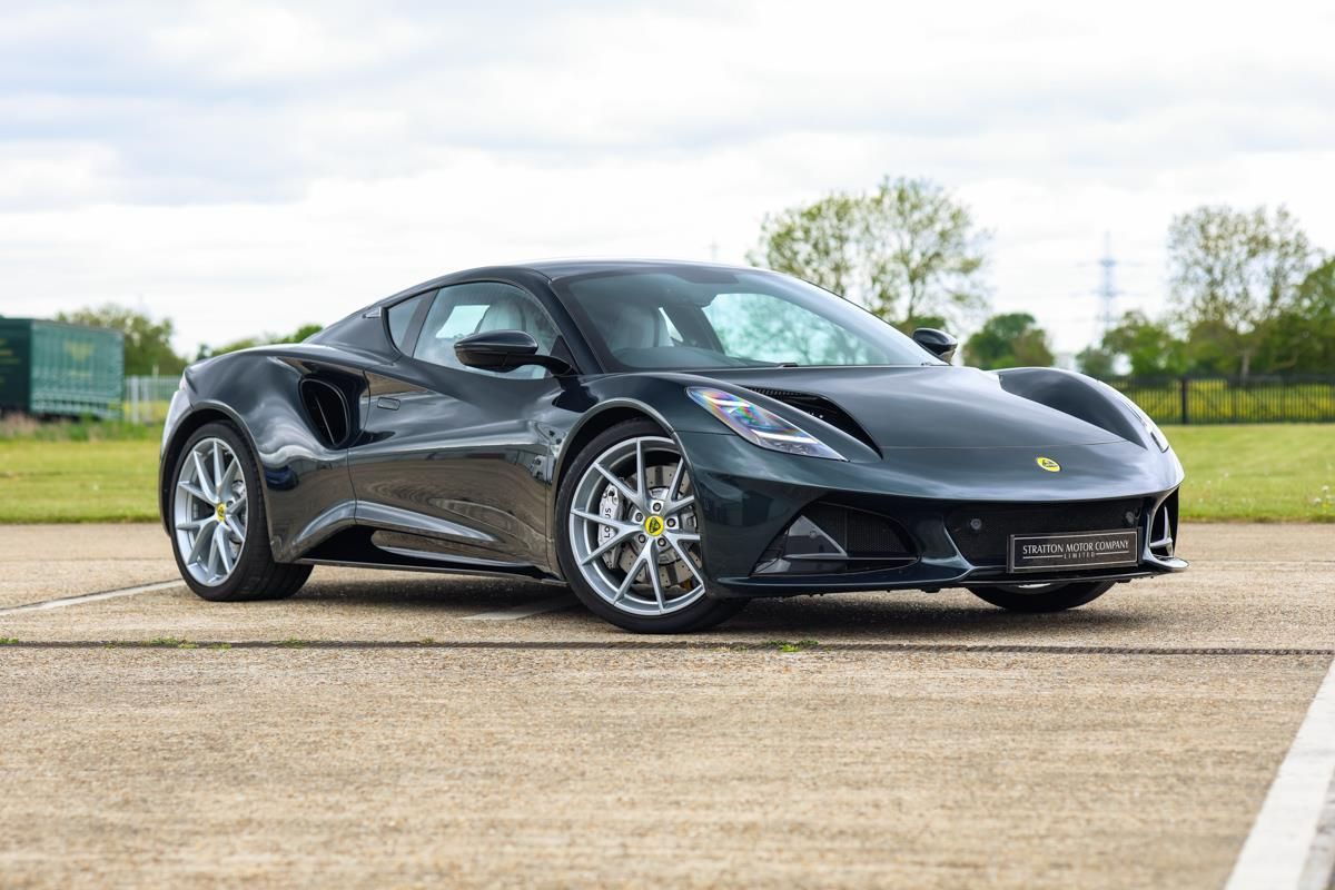 (Sold) Stratton Motor Company are pleased to offer this stunning 2023 Lotus Emira V6 Launch Edition finished in Verdant Green metallic, complemented by being trimmed in Ice Grey leather with black stitching throughout. Built with Sport chassis suspension, fitted with Goodyear Eagle F1 tyres.