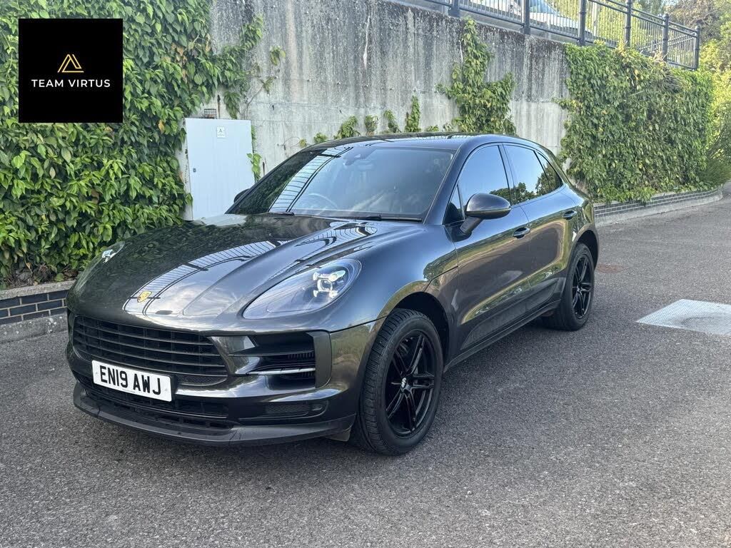 Black interior.VAT Qualitying! VAT can be reclaimed (subject to terms). Here at Team Virtus, we are pleased to offer this 2019 Porsche Macan 3.0T V6 S SUV. Finished in stunning Volcano Grey with contrasting Gloss Black wheels and Black leather interior with decorative Piano lacquered inserts. With a powerful 3.0-litre petrol engine, this vehicle delivers an exhilarating driving experience with 349 bhp and impressive torque of 354 lbs/ft. The seven speed automatic transmission and four-wheel drive system ensure smooth handling and exceptional performance, allowing you to accelerate from 0 to 60 mph in just 5.3 seconds. With a top speed of 157 mph, this SUV is designed for those who crave style, luxury and power. The Macan comfortably seats five passengers and features five doors for easy access. With a mileage of 56,000 miles, this vehicle is ULEZ compliant and offers a fuel consumption of 25.7 mpg, making it a practical choice for both city driving and longer journeys. One of the standout features of this Macan is the Panoramic Roof System. This optional extra not only enhances the aesthetic appeal of the vehicle but also floods the interior with natural light, creating an airy and spacious atmosphere which in our opinion is a must. Other features include code A8F (Sports equipment), GP1 (Vehicles with special upgrade measures), Power latching for tailgate, Premium Gen 2 Radio, Climatronic (3 zone) with air conditioning panel in the rear, Voice control, Aluminium package, Side windows tinted green, from B Pillar to rear window grey tinted safety glass, Front stabilizer bar, Electronic stability control, Stainless steel loading protection, Tiptronic on leather multi function steering wheel, Isofix, Large panoramic roof system, Drivers power seat, Acoustics package, Heated seats, Power closing tailgate, Heat reflecting windshield, Drinks holders, Leather dashboard, 3 rear seats, Power folding mirrors, Tracker, Start/stop with regenrerative braking, Scuff plates, Navigation system (High), Park distance control front and rear, Lane departure warning, LED headlamps with coming home feature, Cruise control and comfort telephony and SIM access profile. In summary, this Porsche Macan 3.0T V6 S SUV is a perfect blend of performance, luxury, and practicality. With its impressive features and optional extras, it is designed for those who demand the best in their driving experience. Don't miss the opportunity to own this exceptional vehicle.