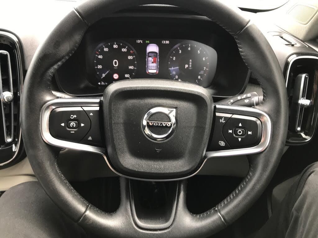 12.3" Active TFT crystal driver's instrument display, 9" centre console portrait touch screen, Adjustable steering wheel force, Bluetooth hands free telephone kit, Drive mode selector, Lane keep assist with driver alert control, Oncoming Lane Mitigation, Sensus navigation with European mapping and traffic information, Speed limiter, Speed sensitive steering, Voice activated control for key functions, Volvo on call, Dynamic chassis, DAB Digital radio, Steering wheel mounted remote controls, Active bending headlights, Adaptive brake lights with high level LED brake lights, Auto dimming interior mirror, Automatic headlamp levelling, Chrome window surround, Colour coordinated auto folding and heated power door mirrors, Dual exhaust pipes, Front aluminium tread plates, Front and rear electric windows, High gloss black front grille with chrome inserts, High gloss black sensus surround deco, High Gloss silver front and rear skid plate, Home safe and approach lighting, LED front fog lights with static cornering light function, LED Headlights + Active high beam incorporating daytime running lights, Rain sensor with automatic windscreen wiper activation, Rear side wing doors, Rear wiper, Roof antenna, Roof spoiler, Silver roof rails, Visible VIN plate, 12V socket in front tunnel console and cargo compartment, 2 zone electronic climate control and rear air vent, 3 seat bench in 2nd row, 3 spoke leather steering wheel with chrome trim, 60/40 split folding rear seat, Ambient front door and instrumental panel lighting, Bright metal luggage threshold, Centre console cupholders and storage, Driver's side lower dashboard credit card storage compartment, Front door pocket and front cupholder illumination, Front footwell illumination, Front headrests, Front reading light and theatre lighting, Front tunnel net pocket and integrated waste bin, Glovebox bag hook, Height/reach adjustable steering column, High gloss centre tunnel deco, Illuminated glovebox, Illuminated luggage compartment, Illuminated tailgate, Illuminated vanity mirrors, Isofix attachments on rear seats, Key integrated remote, Leather faced upholstery, Load protection net, Luxury floor mats, Multi directional lumbar support, Multicolour theatre lights, Orrefors Crystal gear lever knob, Rear armrest / integral cup holders / storage tray, Rear coat hook, Rear reading and courtesy lights, Single front passenger seat, Underfloor cargo storage, Power seat pack - XC40, 3x3 point rear seatbelts, City safety includes pedestrian, cyclist and large animal detection and front collision warning with full auto brake, Drivers knee airbag, Dual stage driver/passenger airbags, Electronic parking brake with auto hold, First aid kit, Front and outer rear seatbelt reminder and pretensioners, Front seats SIPS airbags, Hill descent control, Hill start assist, Inflatable curtain, Passenger airbag cut-off device, Road sign information display, Run off Road Mitigation, Run off Road Protection, SIPS (Side Impact Protection System), Slippery road and hazard light alert, Stability and Traction Control with Spin control, Engine Drag Control and Corner Traction Control, Tyre pressure monitoring system, Vehicle deceleration control with Anti-lock Brake System, Electronic Brake Distribution and Emergency Brake Assist, Warning triangle, WHIPS whiplash protection system - front, Anti-theft alarm including immobiliser/volume sensor + level sensor, Care key with user defined top speed, Key integrated remote control central locking + fuel flap with deadlocking system and auto open/close power windows, Locking wheel nuts, Private locking for tailgate, Driftwood inlays