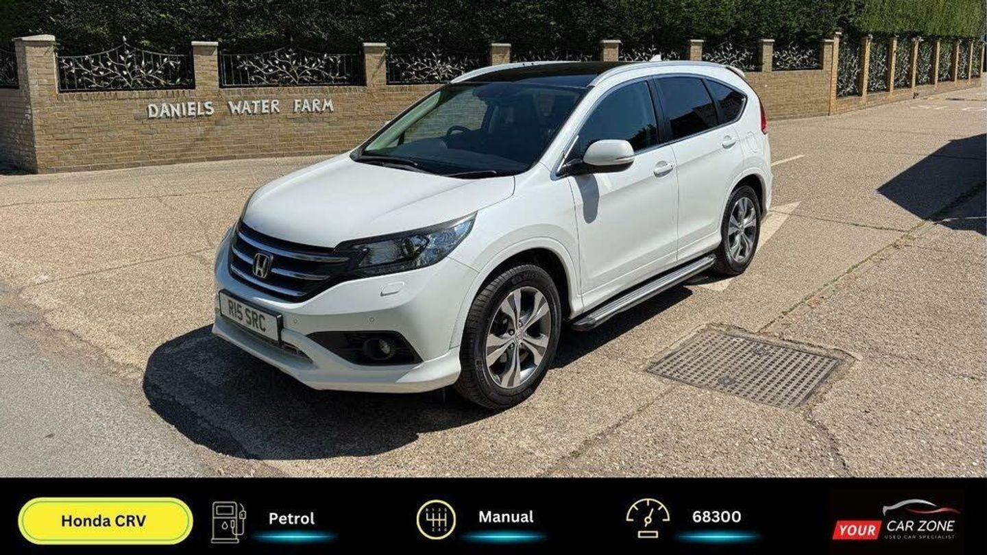 Honda Cr-v 2.0 I-vtec Ex Suv with 6 speed manual gearbox finished in pearl white metalic paint and black leather interior.This stunning example has only covered 68300 miles from new and has a full service history. New major service and full health inspection carried out by our own garage. Every car is prepared to the Highest Standards! This Honda comes with:Full Service History12 months MOT3 months WarrantyPanoramic roofDual Zone Climate ControlRadio with USB and Bluetooth connectionSat NavFront and Rear Parking Sensors and reversing cameraAutomatic WipersRear Privacy GlassNearly New Front and Rear Discs and PadsHPI Checked and ClearWe are based in Ashford Kent TN26 1JYPart Exchange WelcomeDelivery Service AvailableFinance Available Call us on 07595401413www.yourcarzone.co.uk-12 months MOT