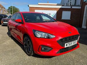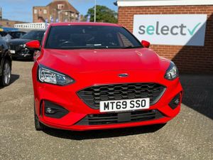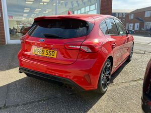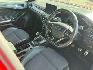 18in Alloy Wheels - 5x2 Spoke - Matt Black - Machined Finish, Airbags - Driver and Front Passenger, Airbags - Front Side Impact, Airbags - Front and Rear Side Curtain, Alloy Finish Pedals, Automatic Dimming Rear View Mirror, Body Colour Bumpers, Cruise Control with Speed Limiter, DEATC - Dual-Zone Electronic Automatic Temperature Control, Dark Headliner, Door Handles - Body Colour, Door Mirrors - Electrically-operated - Heated - Power-Foldable - Body Colour Housings - Side Indicators - Puddle Lights, ESC - Electronic Stability Control, Electric Parking Brake, Flat Bottomed Steering Wheel with Red Stitching, Ford Easy Fuel System, Ford SYNC3 DAB Navigation System, FordPass Connect, Front Passenger Airbag Deactivation Switch, Front Seat - Drivers Manual Lumbar Support Adjustment, Front Seats - Driver and Passenger Heated Seats, Front and Rear Floor Mats with Red Stitching, Front and Rear Seatbelt Minder, Gear Knob - Aluminium, Halogen Reflector Headlights, Headlights - Automatic On-Off, Instrument Cluster - 4.2in Colour TFT Display, Keyless Start with Ford Power Start Button, LED Daytime Running Lights, LED Front Fog Lights with Cornering Function, Lane Keeping Aid with Lane Departure Warning, Large Rear Spoiler - Body Colour with Centre High Mounted Stop Light, MyKey, Parking Sensor - Front and Rear, Passenger Seat Manual Height and Lumbar Adjust, Polished Twin Tailpipe, Post Collision Braking, Pre-Collision Assist with Autonomous Emergency Braking and Pedestrian-Cyclist Detection, Pre-Collision Assist with Pedestrian Detection, Quickclear Heated Windscreen, Rain Sensitive Windshield Wipers, Rear Centre Headrest, Rear Privacy Glass, Red Brake Calipers, Remote Central Locking and Engine Immobiliser, Selectable Drive Mode, Soft Console Knee Pads with Red Stitching, Spare Wheel - Mini Steel, Sports Tuned Suspension, Steering Wheel - 3-Spoke - Leather Trimmed, Steering Wheel - ST-Line Sports Style - Flat Bottom, Thatcham Category 1 Alarm, Trip Computer, Tyre Pressure Monitoring System, Unique Door and Instrument Panel Inserts, Unique ST-Line Upper and Lower Grille and Full Bodystyling Kit and ST-Line Wing Badges, Windows - Electrically Operated Front and Rear with One Touch Opening and Closing
