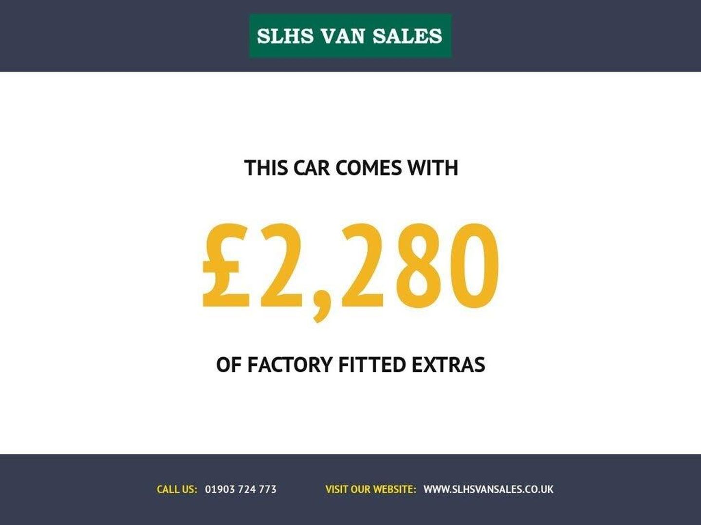 4 Services (1 MD) - last service on 09.04.2025 @ 80,115 miles & Cam Belt & water pump replaced on 02.11.2024 @ 62,500 - Only 80,855 miles - Euro 6, touchscreen display with built in DAB, Aircon, rear parking sensors, E/W, Bluetooth, heated electric mirrors, heated screen, rear barn doors, cruise control, USB-C port, Start/Stop, driver's airbag, factory fitted bulkhead, side loading door, ply lined, remote Central Locking, colour coded, LED interior lights, spare key, finance arranged on site & 6 months Premium Autoguard warranty on every van We are a family run business that has been established for over 30 years so to discuss finance options or if you require further details then please feel free to contact a member of the team on 01903 724773 or visit our website www.slhsvansales.co.uk. Part exchange welcome, delivery can be arranged, we can also supply & fit roof racks, ply lining, hands free kits, parking sensors or any other requirements you may have when purchasing your new van SLHS van sales is a friendly family run business Established in 1993, we have over 50 vans in stock with indoor showrooms for up to 20 vans. We can arrange finance on site or you can apply via our website, we also accept debit/credit cards & supply a 6-month Premium Autoguard warranty as standard which can be extended. All our quality used commercial vehicles are carefully sourced from reputable companies, HPI clear & independently inspected.