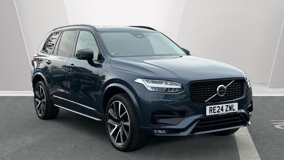 21in Alloy Wheels - 5 Double Spoke - Diamond Cut - Black, Dark Tinted Windows - Rear Side Windows and Rear Screen, Leather-Faced - Charcoal, Denim Blue Metallic Paint, Charcoal Leather Interior, Tinted rear windows, Panoramic roof, Adaptive cruise control, Pilot Assist, 360* Camera, BLIS, Apple CarPlay, Reserve online for £100, Personalised walkaround video available on request, Call Leicester on 01162758800, Tailored gear shift, Blond headlining, Metal Mesh aluminium decor, Leather upholstery, Tailored steering wheel. Charcoal, Comfort front seats, 8-speed Geartronic? automatic. AWD, Pedals, Third row air conditioning, Four-zone climate system, Afterrun parking climate, Passenger airbag cut-off switch, Dual-stage airbags, Knee airbag. driver side, Panoramic roof, Road Sign Information, Lane Keeping Aid and Lane Departure Warning, Front grille with high-gloss black insert, Heated grill emblem, Full-LED headlights, Headlight cleaning, Trailer lamp control, Fog lamps, 12.3-inch driver display, Google Assistant. Google Maps and Google Play Store - included for 4 years, Adaptive cruise control, Pilot Assist, Speed limiter, Volvo Cars App remote functions, Air-ventilated subwoofer, Digital Audio Broadcasting (DAB+), Harman Kardon Premium Sound, Power retractable door mirrors, Power passenger seat with memory, Wireless phone charging, Automatic door locking, Remote key, Door mirror covers. high-gloss black, Double locking, Tinted rear windows, BLIS? and Cross Traffic Alert, Alarm, Power child safety lock, Keyless entry with hands-free power tailgate, Air purifier and remote cabin pre-cleaning, Digital owners manual, Textile mats. third-row, Tailored dashboard and door top panels, Power driver seat with memory, Power passenger seat, Heated front seats, Heated rear seats, Power folding outer rear head restraints. second row, 7 seats, Mechanical release second seat row, Power 4-way lumbar support, Exclusive textile interior cabin floor mats. Charcoal, Protection net, Grocery bag holder, Rear centre armrest, Illuminated vanity mirrors, Interior illumination. high level, Power outlet. load compartment, First-aid kit, Load cover, Rear door sun curtains, Auto-dimmed rear view mirrors, Hidden storage, Power cushion extension. driver, Touring chassis, Hill Start Assist, Tyre pressure monitoring, Oncoming Lane Mitigation, Rear Collision Warning, Hill Descent Control, Slippery road alert, Emergency brake light, Heated steering wheel, Adaptive power steering, 21? 5-V Spoke Black Diamond Cut, Temporary spare wheel, Lockable wheel bolts, Heated windscreen, Wiper blades with integrated washers, Body-coloured door handles with ground lighting, Glossy black front decor elements, Tailgate scuff plate. stainless steel, Illuminated sill moulding, High-gloss black side window trim, Roof rails. glossy black, Warning triangle, All-wheel Drive (AWD), Tempered side windows, Park assist. front. rear and sides, Ticket holder, 360° camera, Alcohol lock software (not available in the UK), Protective cap kit. Matt Tech Grey, Apple CarPlay, 9-inch centre display, Whiplash injury protection, Inflatable Curtain, Side impact protection, Intelligent Driver Information System (IDIS), High positioned rear brake lights, ISOFIX mounting points. rear seat, Safety belts, Rain sensor, Steering wheel remote control, Humidity sensor, Start/Stop technology, Bluetooth® connection
