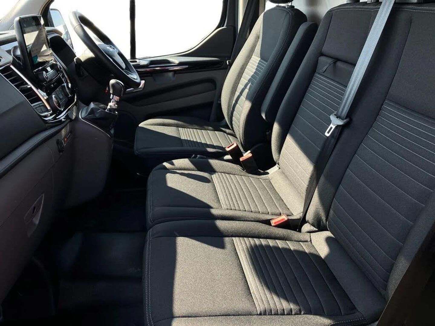 Easy fuel capless refuelling system,Embedded modem,Ford Eco mode,PAS,Selectable drive mode,Trip computer,Vehicle maintenance monitor,Audio controls mounted on steering wheel,180 Degree rear cargo check arms,Automatic headlamps with follow me home,Automatic lights and wipers,Body colour door handles,Body coloured body side mouldings,Body coloured door mirrors,Body coloured exterior mirror finish,Body coloured lift/decklid exterior handles,Body coloured rear bumpers,Chormed grille with 3 bars,Delete roof mounted turn signals,Door open tyre carrier drop,Electric front windows with one touch facility for driver and front passenger,Emergency brake light flashing,Front splash guards/Mud flaps,Headlamp levelling,Intermittent front wash/wipe,Kerbside side load doors,Low roof line,Molded load floor liner,Quad beam headlamps,Rear cargo hinged door,Rear door edge warn reflectors,Rear mudflaps,Rear splash guards,Tutone painted plastic front bumper,Unrestricted side load door opening,Wide bodyside grey mouldings,2 Interior grab handles,Assist handle,Cloth upholstery,Colour keyed exterior pack,Complete rear trim board,Driver and passenger sunvisors with illuminated vanity mirrors,Floorwell lights,Front manual air conditioning,Header mounted courtesy lights - 2 map lights,Header mounted package tray,Height adjustable front headrests,Illuminated footwell,Leather gearshift knob,LED load compartment rail light,Load compartment interior light,Lockable glove box,Map reading lights,Partial molded headliner,Passenger underseat storage box,Reach and rake adjustable steering column,Recirculation heater,Side rear door trim panel - Level 1,Sunglasses roof storage,Tool kit,Interior trim accent pack C - Transit custom,Less rear seat pack - Transit Custom,Load area protection kit 2 - Transit Custom,3 point seatbelts for all seats,Driver's airbag,Dual note electric horn,Front outer passenger airbag with deactivation switch,Height adjustable drivers seatbelt mount,Passenger airbag restraint,Passenger seatbelt height adj,Seatbelt remainder for driver and passenger,Auto locking on drive-away,Auto relocking,Configurable Unlocking,Inclination anti-Theft sensor,Locking wheel lug nut,Power door dead locks,Remote central locking,Speed dependent power lock group,Thatcham category 1 alarm with 2nd remote key,2 12v sockets,80 litre fuel tank,ABS,Auto start/stop system,Diesel particulate filter,ESP,Extra heavy duty alternator,Mechanical parking brake,Power point plug 400W - Level 2,Roll stability control,Side wind mitigation,Standard duty suspension,16" 6.5 alloy wheels,Full wheelcovers,Spare wheel,Magnetic