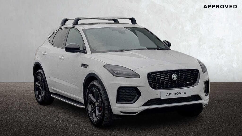 19in Alloy Wheels - 5 Spoke Satin Dark Grey - Style 5119, Privacy Glass, 12-Way Driver Memory and 10-Way Passenger Heated Electric Front Seats with 2-Way Manual Headrests and Rear Centre Armrest, Auto-Dimming Interior Rear View Mirror, Bright Metal Pedals, Cabin Lighting, Carpet Mats, Ebony Morzine Headlining, Interactive Driver Display, Large Fuel Tank, Leather Steering Wheel, Metal Loadspace Scuff Plate, Metal Treadplates with Jaguar Script, Power Tailgate-Boot Lid, Satin Chrome Gearshift Paddles, 19in Alloy Wheels - 5 Spoke Satin Dark Grey with Contrast Diamond Turned Finish - Style 5119, Black Exterior Pack, Body Coloured Roof, Electric Windows - Front and Rear with One-Touch Open-Close and Anti-Trap, Fixed Panoramic Roof, Heated - Electric - Power Fold Door Mirrors with Approach Lights and Auto-Dimming Driver Side, Heated Front Windscreen, Heated Washer Jets, Locking Wheel Nuts, Summer Tyres, Twin Tailpipes, Adaptive Cruise Control, Android Auto, Apple CarPlay, Blind Spot Assist, Configurable Dynamics, DAB Radio, Driver Condition Monitor, EPAS - Electric Power Assisted Steering, Efficient Driveline, Front and Rear Parking Aid, JaguarDrive Control with Adaptive Surface Response, Meridian Sound System, Online Pack with Data Plan, Passive Suspension, Pivi Pro Connected, Premium LED Headlights with Signature Daytime Running Lights with Front and Rear Animated Directional Indicators and Auto Hight Beam Assist, Rear Camera, Rear Collision Monitor, Remote, Traffic Sign Recognition with Adaptive Speed Limiter, Tyre Pressure Monitoring System, Wireless Device Charging, ABS - Anti-locking Braking System, ASPC - All Surface Progress Control, Airbag - Driver, Airbags - Passenger, Emergency Braking, Intrusion Sensor, Keyless Entry, Lane Keep assist, Rear Traffic Monitor, Secure Tracker - 12 Month Subscription