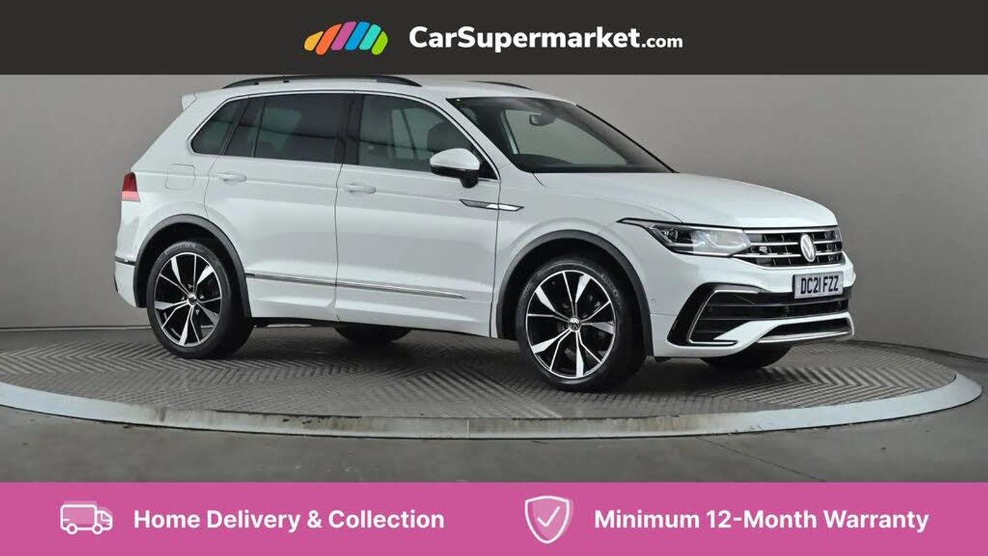 Cruise Control, Adaptive Cruise Control, Apple CarPlay, Android Auto, Wireless Phone Charging, App-Connect, Bluetooth, Digital Cockpit, Privacy Glass, Automatic Climate Control, 20" Alloy Wheels;With only one previous owner and very low mileage of just 20229 miles for a 2021 registration year, this Volkswagen Tiguan is a great find. As a Tiguan R-Line, this model boasts a sporty aesthetic and practical features. The vehicle is powered by a responsive 1.5L petrol engine and meets the Euro 6 emission standards, ensuring lower emissions. The Tiguan R-Line offers a large boot space, making it an ideal choice for families or anyone needing extra room for luggage or equipment. The vehicle's acceleration, reaching 0-62mph in 9.2 seconds, demonstrates its capability, offering a balance of performance and efficiency that sets it apart from similar vehicles.