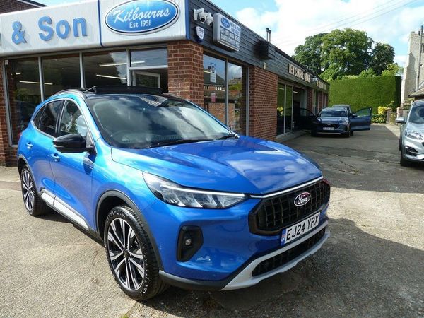 This is the new Kuga Active FHEV 183PS AWD automatic. Self-charging hybrid 4wheel drive, This Kuga has a towing capacity of 2000KG. Factory extras are, Winter pack heated front 10 way SGR electric adjusting and heated rear seats, opening glass panoramic sunroof, 20''Machined twin spoke upgraded alloys, Mini spare wheel, upgraded rear premium boot matt, Sync4 navigation with surround camera system and park assist. Adaptive cruise with blind spot information. Fantastic saving on new ££££ NEW LIST PRICE IS £45295 !!!!!!, Please call for an appointment to view.-£4400 EXTRAS ,4 Wheel drive.-VISIT kilbourns.co.uk for MORE STOCK CHOICE
