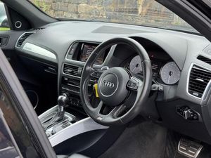 12V Power Socket, 20in Alloy Wheels - 5-Parallel Spoke Design, 6.5in Display Screen, ABS - Anti-Lock Braking System, AUX-IN Socket, Acoustic Windscreen, Air Conditioning - Deluxe Automatic at the Rear, Airbags - Driver, Airbags - Front Passenger, Airbags - Front Side, Airbags - Head System, Alarm - Thatcham Category 1, Aluminium Roof Rails, Aluminium-Effect Door Mirror Housings, Amplifier - 6 Channel, Anti Theft Locking Wheel Bolts, Armrest Doors - Leather, Audi Sound System, Audio Sound System, Auto-Dimming Rear-View Mirror, Automatic Headlight Range Adjustment, Automatic Wipers with Rain Sensor, Body Coloured Bumpers, Brake Calipers - Black with S Logo, Car Jack, Cloth Headlining in Black, Colour Drivers Information System - DIS, Concert Radio, Cruise Control, Cup Holders - Centre Console, Deluxe 3-Zone Climate Control, Door Mirrors - Electrically Adjustable and Heated, Door Sill Trims - Aluminium with SQ5 Embossing, EBD - Electronic Brakeforce Distribution, ESP - Electronic Stability Programme, Electric Windows - Front and Rear, Electrically Adjustable 4-Way Lumbar Support, Electromechanical Parking Brake, Electromechanical Power Steering, Exhaust Tailpipe - Chrome Rolled Finish x4, Exhaust Tailpipe - Twin Chrome Rolled Finish - Both Sides, First Aid Kit, Front Centre Armrest, Front Fog Lights, Front Passenger Airbag Deactivation Switch, Front and Rear Floor Mats, Headlight Washers, Headlights - Bi-Xenon Plus, Headlights - Coming-Leaving Home Function, Headlights - Light Sensor, Hill Descent Control, ISOFIX Child Seat Preparation Front and Rear, Inlays - Matt Brushed Aluminium, Interior Light Package, LED Daytime Running Lights, LED Interior Light Package, LED Rear Lights, Leather Door Armrests, Leather Package - Door Armrests, Misfuelling Inhibition, Mobile Telephone Preparation - Bluetooth Interface, Pollen Filter, Radiator Grille - S Design with S5 Logo, Rear Parking Sensors, Remote Boot Release, Remote Central Locking, Rest Recommendation System, Roof Bars and Storage Bag, Roof bar detection, S Design Body Styling, S Instrument Dials, S Sport Suspension, SDHC Card Reader, Seats - Front Electric Adjustment, Seats - Front Electric Height Adjustment, Split-Folding Rear Seats, Spoiler, Steering Column - Rake and Reach Adjustment, Steering Wheel - 3-spoke S line Multi-function Leather, Steering Wheel - Gear Shift Paddles, Steering Wheel - Multi-function, TP Memo - Automatically Saves Traffic News, Tool Kit, Traction Control, Tyre Mobility System, Warning Triangle, Window Surrounds - Aluminium, Audi Drive Select, 21in Alloy Wheels - 5-Twin-Spoke Star Design in Titanium Look with High Gloss Finish, Privacy Glass