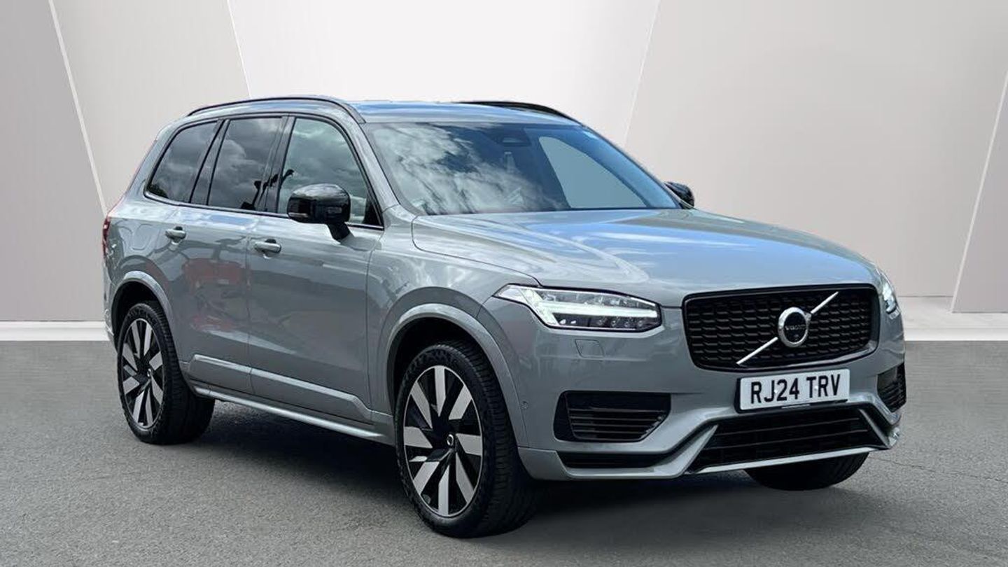 Tailored gear shift, Blond headlining, Metal Mesh aluminium decor, Leather upholstery, Tailored steering wheel. Charcoal, Comfort front seats, 8-speed Geartronic? automatic, Pedals, Third row air conditioning, Four-zone climate system, Afterrun parking climate, Passenger airbag cut-off switch, Dual-stage airbags, Knee airbag. driver side, Panoramic roof, Road Sign Information, Lane Keeping Aid and Lane Departure Warning, Front grille with high-gloss black insert, Heated grill emblem, Full-LED headlights, Headlight cleaning, Trailer lamp control, 12.3-inch driver display, Google Assistant. Google Maps and Google Play Store - included for 4 years, Adaptive cruise control, Pilot Assist, Intelligent Speed Assist (ISA), Volvo Cars App remote functions, Air-ventilated subwoofer, Digital Audio Broadcasting (DAB+), Harman Kardon Premium Sound, Power retractable door mirrors, Power passenger seat with memory, Wireless phone charging, Automatic door locking, Remote key, Door mirror covers. high-gloss black, Double locking, Tinted rear windows, BLIS? and Cross Traffic Alert, Alarm, Power child safety lock, Keyless entry with hands-free power tailgate, Air purifier and remote cabin pre-cleaning, Digital owners manual, Textile mats. third-row, Tailored dashboard and door top panels, Power driver seat with memory, Power passenger seat, Heated front seats, Heated rear seats, Power folding outer rear head restraints. second row, 7 seats, Mechanical release second seat row, Power 4-way lumbar support, Exclusive textile interior cabin floor mats. Charcoal, Protection net, Grocery bag holder, Rear centre armrest, Illuminated vanity mirrors, Interior illumination. high level, Power outlet. load compartment, First-aid kit, Load cover, Rear door sun curtains, Auto-dimmed rear view mirrors, Hidden storage, Power cushion extension. driver, Touring chassis, Hill Start Assist, Tyre pressure monitoring, Oncoming Lane Mitigation, Rear Collision Warning, Hill Descent Control, Slippery road alert, Emergency brake light, Heated steering wheel, Adaptive power steering, 21? 8-Spoke Black Diamond Cut, Temporary mobility kit, Lockable wheel bolts, Heated windscreen, Wiper blades with integrated washers, Body-coloured door handles with ground lighting, Glossy black front decor elements, Tailgate scuff plate. stainless steel, Illuminated Recharge aluminium front tread plates, High-gloss black side window trim, Roof rails. glossy black, Warning triangle, Tempered side windows, Park assist. front. rear and sides, Ticket holder, Electric cabin heater and cooler, 360° camera, Alcohol lock software (not available in the UK), Charging station cable. 6m, Apple CarPlay, 9-inch centre display, Home charging cable. mobile 7m (10A), Whiplash injury protection, Inflatable Curtain, Side impact protection, Intelligent Driver Information System (IDIS), High positioned rear brake lights, ISOFIX mounting points. rear seat, Safety belts, Rain sensor, Steering wheel remote control, Humidity sensor, Start/Stop technology, Bluetooth® connection