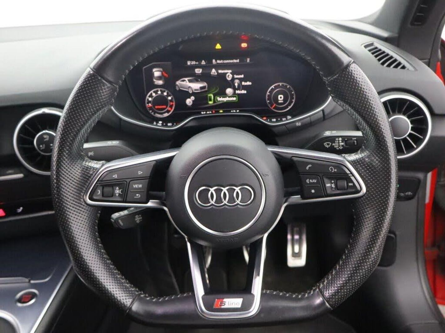 AMI - Audi Music Interface, Bluetooth Mobile Telephone Preparation, DAB Digital Radio, MMI Radio, 19in Alloy Wheels - 5-Arm Star Design, Door Mirrors - Electrically Adjustable and Heated, Radiator Grille - High Gloss Black, S Line Badge on the Steering Wheel, S Line Badges on the Front Wings, S Line Body Styling, 4-Way Electric Lumbar Support for Front Seats, Audi Virtual Cockpit, Flat-Bottomed 3-Spoke Leather-Trimmed Multi-Function Sport Steering Wheel, Front Centre Armrest, Front Sports Seats, Headlining - Black, Inlays - Matt Brushed Aluminium, Keyless Go, Manual Air Conditioning, Alcantara-Leather - Sport Seats - Black, Tango Red, All Weather LED Headlights, LED Tail Lights, Light and Rain Sensor, Sport Suspension, Audi Drive Select, Cruise Control, ISOFIX Child Seat Mounting