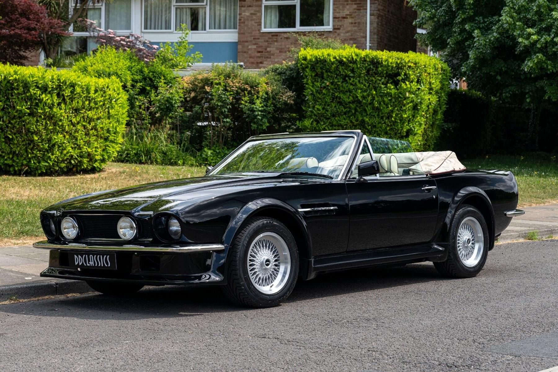 - One of only 59 such cars built - Exceptionally low mileage –only 11,700 miles from new! - Stunning Cannock Black exterior coachwork - Parchment Connolly leather interior, accented by contrasting piping - Equipped with the desirable “glass” rear window and factory air conditioning - A rare opportunity to acquire a truly beautiful example of this UK Classic - A collectors dream-find! - Ready for it's next coast to coast adventure! Our 1988 Aston Martin V8 Vantage Volante is a rare and exceptional example of Aston Martin’s powerful open-top grand tourers. With only 11,700 miles from new, it remains one of the most sought-after versions of the marque’s iconic V8 series. As one of just 59 factory-built left-hand drive Vantage Volantes, this car is extraordinary in both rarity and condition. Originally built for the US market, these left-hand drive fuel-injected Vantage Volantes feature the desirable Vantage bodywork with its more aggressive styling, large flares and ducktail spoiler but use the same fuel injection system as standard V8 and V8 Volante models, making for a car with more than ample power and significantly increased useability over the more performance focused, carburetted X-Pack cars. The car’s Black exterior pairs beautifully with a Parchment Vaumol leather interior, detailed with contrasting piping, a classic and tasteful combination that echoes the car’s understated yet confident character. Powered by a 5.3-litre V8 engine, the Vantage looks phenomenal unmistakably aggressive styling cues — flared arches, deep front air dam, and muscular stance. Notable features include the highly desirable glass rear window, which replaced the less durable plastic variant found on earlier cars, and factory air conditioning, a rare but welcome addition that enhances comfort for open-air driving. The V8 Vantage Volante represents the culmination of Aston Martin’s hand-built carburetted V8 era — combining raw power with refined craftsmanship and timeless design. Original factory left-hand drive examples with such unbelievably low mileage are virtually unparalleled in today’s market. We are pleased to offer this exceptional car — a rare opportunity to own a genuinely authentic, powerful, and beautifully maintained Aston Martin V8 Vantage Volante. Now available for viewing at the DD Classics Dealership in London, please call to book an appointment. Every effort has been made to ensure the accuracy of the above information but errors may occur. Please check with a salesperson.
