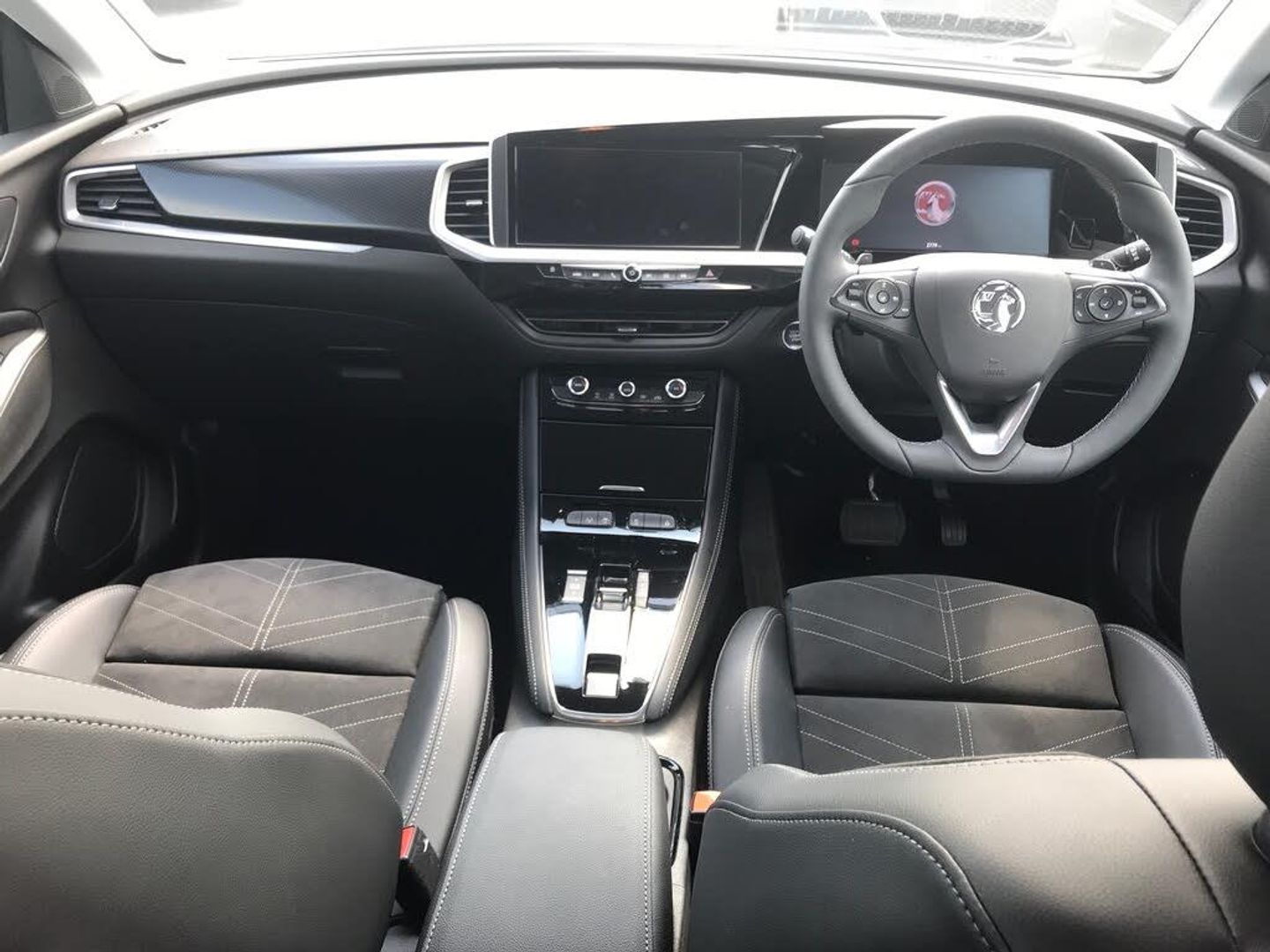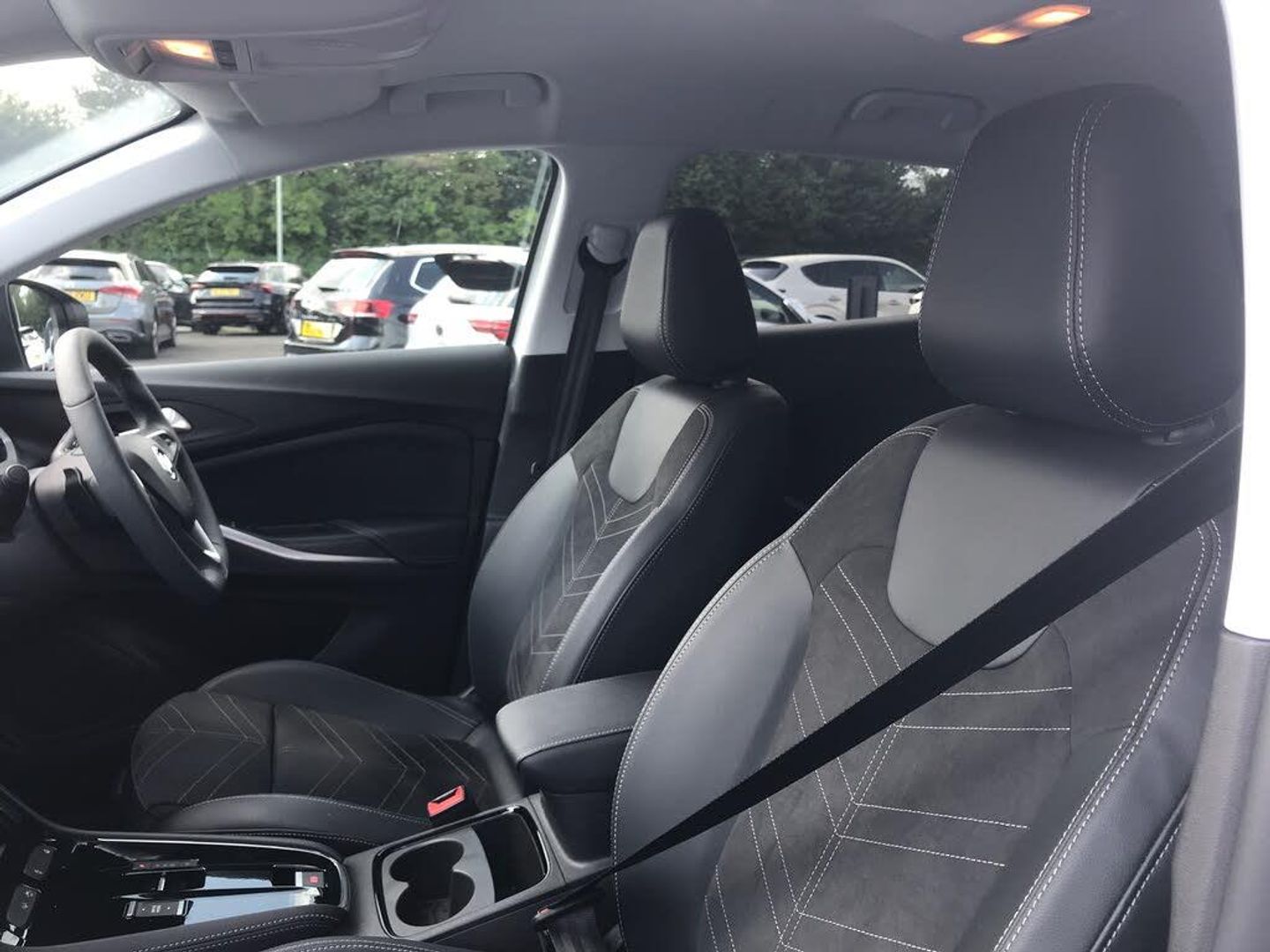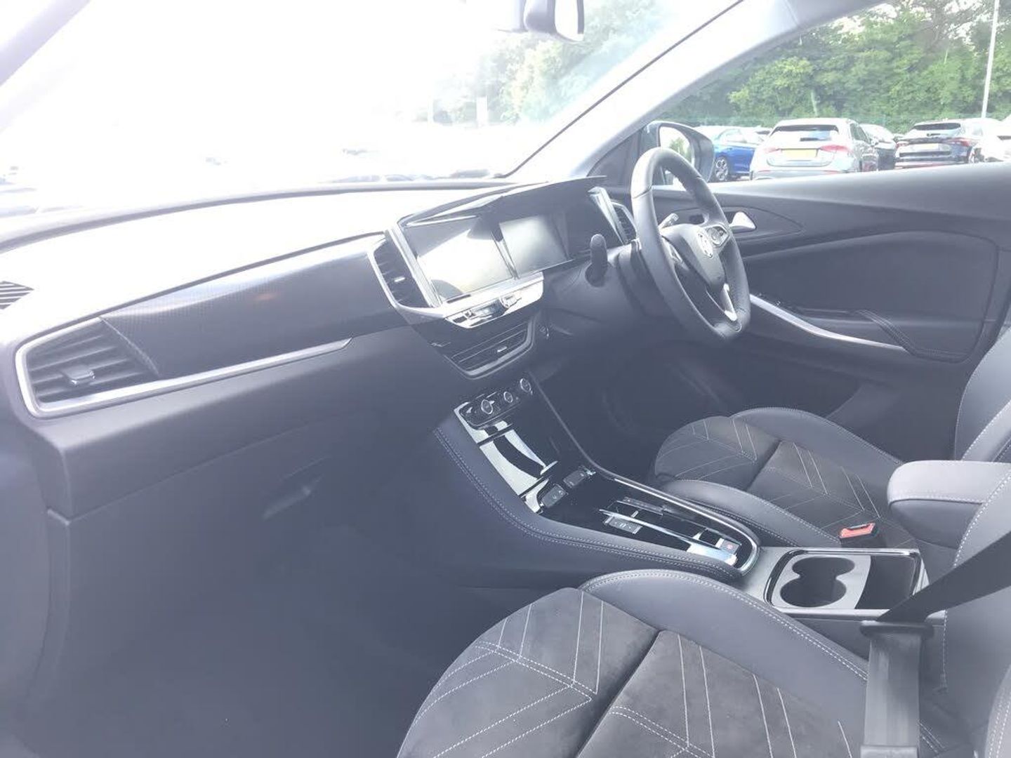Bluetooth + USB, Central facia display with digital clock, outside air temperature and audio information, Digital fuel gauge with low fuel level warning light, Digital rev counter, Digital speedometer, Digital water temperature gauge with warning light, Drive mode selector (Eco, Normal, Sport), Driver drowsiness alert system, Driver information - Total mileage, service indicator, oil life, Front and rear parking distance sensors with 360 degree rear view camera and advanced park assist, Gearshift up/down indication light, Highway integration assist (Lane positioning assistant and Adaptive cruise control), Lane departure warning system, Lane keep assist, Lights on audible warning, Multi function trip computer - Trip odometer, vehicle range, average speed and fuel economy, instantaneous fuel economy and driving time, Multimedia Pure Panel Navigation System incl 10" colour touchscreen, 12" digital instrument cluster & satellite naviagtion, Power operated tailgate with foot sensor, RDS with traffic programme, Side blind spot alert, Speed limiter, Speed sensitive electric power assisted steering, Speed sign recognition, Start/stop system, Vauxhall connect including Emergency call (SOS e-call) and Breakdown call (b-call), Wireless charger for mobile devices, Anti-roll bars, Compound crank rear suspension with coil springs and gas pressure dampers, Independent decoupled MacPherson strut front suspension with gas pressure dampers and coil springs, AM/FM and DAB radio, Six speaker - four front + two rear, Smartphone interface with apple carplay and android auto, Steering wheel mounted audio/phone/cruise controls, Automatic lighting control, Automatically dimming anti dazzle rear view mirror, Black door mirrors, Black side window trim, Body colour door handles, Body colour upper front bumper, Carbon black lower front and rear bumpers, protective wheel arches and lower door cladding, Collapsible windscreen wipers, Dark tinted rear windows, Door to door illumination, Electric adjustable/heated/folding door mirrors, Electrically operated front and rear windows with safety auto reverse and one touch up/down facility, Front wiper system spraying directly from wipers, Hazard warning lights, Heated rear screen with timed cut off, Heated windscreen, High beam assist, High gloss black cladding, High gloss black exterior detailing, High gloss black Griffin for Vizor and tailgate with high gloss black Grandland tailgate lettering, High gloss black protective front and rear skid plates and C-shape bumper inserts, High gloss black roof rails, High level centre rear brake light, IntelliLux adaptive LED pixel headlights and LED tail lights, Intermittent rear window wash/wipe, LED daytime running lights, LED front fog lights, Magic wash, Manual headlight beam levelling, Rain sensor windscreen wipers, Rear side wing doors, Rear spoiler, Reversing light, Shark fin aerial, Soundproof insulated windscreen, Two speed windscreen wipers with variable intermittent wipe, Upper and lower bumper design, Vizor front grille, Welcome lighting, 12V electrical accessory socket in front, 3 bench rear seats in 2nd row, 3 spoke heated flat bottom leather effect steering wheel with satin chrome effect bezel, 6 way adjustable Ergonomic active heated sports style front seats AGR approved with seat cushion extension and lumbar adjustment, 60/40 split folding rear seat with centre rear seat armrest and load though facility, Advanced predictive logic control system using a sun sensor, Alcantara cloth upholstery, Ambient centre console downlighter, Automatic air direction and fan speed with manual override, Black premium leather effect side bolsters, Charcoal filter, Chrome effect interior door handles, Covered storage compartment in centre console and in driver armrest, Driver's centre armrest, Driver/passenger sunvisors with illuminated vanity mirrors, Dual zone electronic climate control, Front door pockets with 2.6 litre capacity, Front seat back storage pockets, Fully carpeted luggage area, Height adjustable headrests, Illuminated luggage area, ISOFIX on front passenger and rear outer seats, Luggage compartment cover, Reach + rake adjustable steering column, Rear centre seat head restraint, Rear door pockets with 1.8 litre capacity, Rear passenger compartment heating ducts, Rear reading lights, Two drinks holders in centre console, Anti-lock braking system (ABS), Automatic emergency braking with pedestrian detection, Child proof locks on rear doors, CSC - Cornering stability control, Deactivation switch for front passenger front and side impact airbags, Deflation detection system, Driver airbag, Dual seatbelt pretensioners on front seats, EBD - Electronic brakeforce distribution, Electronic parking brake, Electronic stability program (ESP) including traction control, Forward collision alert, Front brake ventilated disc 304mm diameter, Front passenger airbag, Front seat side impact airbags, Full-size curtain airbags for driver and front passenger, Hill start assist, Hydraulic Brake Assist (HBA), Inertia reel lap and diagonal seatbelts for all seats, Load limiters on outer rear seatbelt retractors, Pretensioners on outer rear seatbelt retractors, Rear brake ventilated disc 268mm diameter, Smart seatbelt reminder for front and rear seats, Tyre pressure monitoring system, Central locking, Deadlocking system, Electronically protected audio equipment, Engine deadlock immobiliser, Keyless entry and start, Locking wheel nuts, Remote security alarm system, Black door panels with black premium leather effect inserts, Dax decor facia panel with palladium medium finish, 19" diamond cut bi-colour alloy wheel
