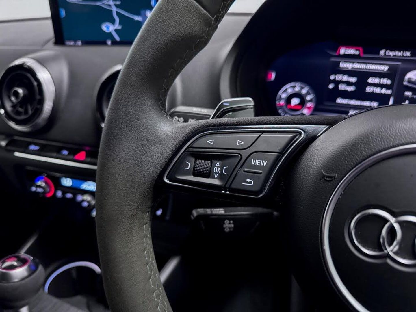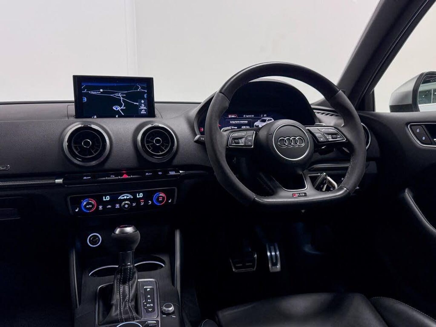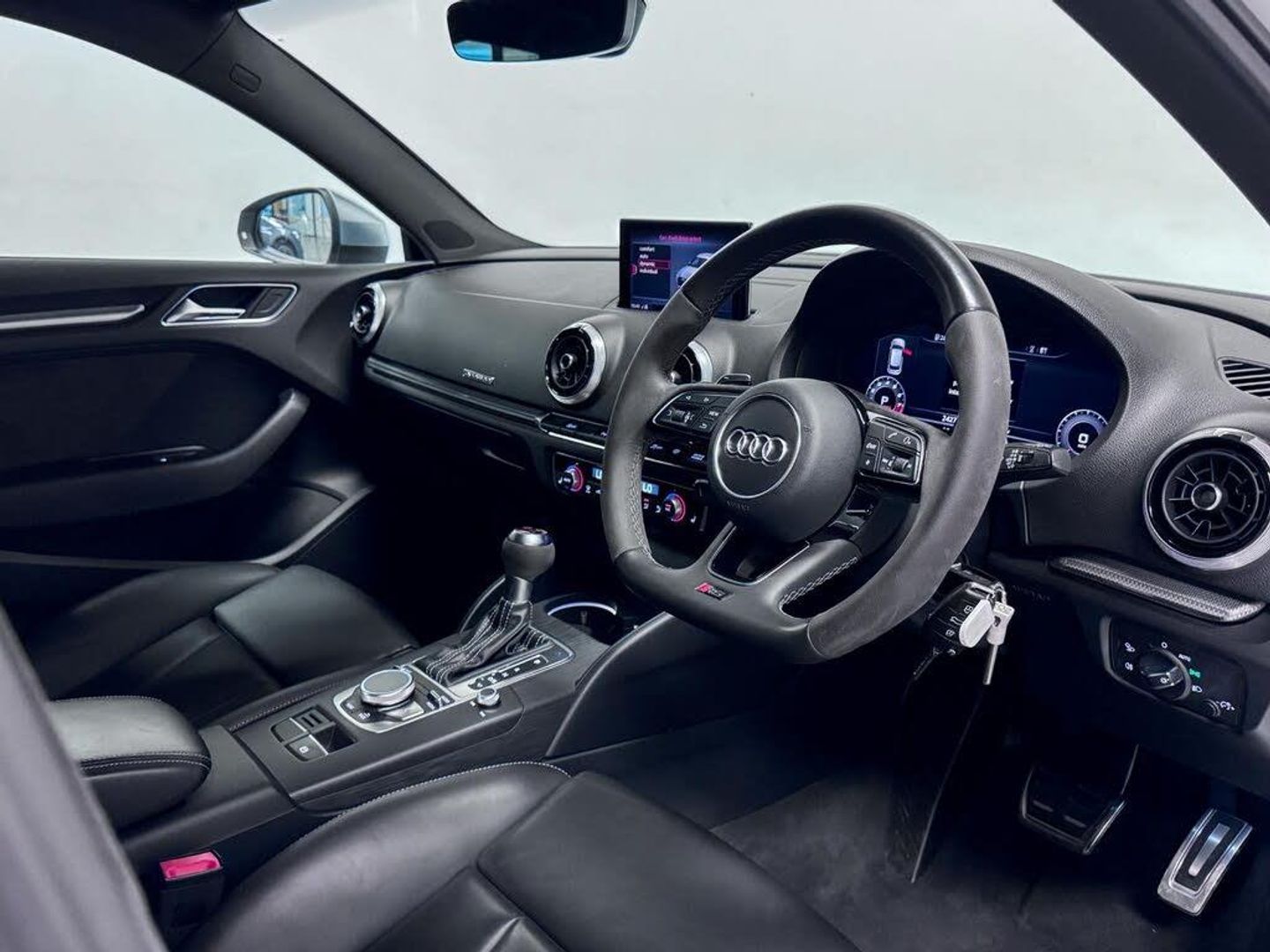 19in Alloy Wheels - 5-Arm Rotor Design, 2 x USB Charging Ports and 1 x AUX-IN, 6-Airbag System with Knee Airbag for Driver, Aluminium Interior Elements, Anti Theft Locking Wheel Bolts, Anti-Theft Alarm, Audi Beam, Audi Connect Infotainment Services - 36 Month Subscription, Audi Drive Select, Audi Hill Hold Assist, Audi Parking System Plus, Audi Smartphone Interface, Audi Sound System, Audi Virtual Cockpit with RS Specific Display, Auto-Dimming Rear-View Mirror with Light and Rain Sensor, Bluetooth Interface, Brake Calipers Painted in Black with RS Logo at the Front, CD Drive, Cruise Control, DAB Digital Radio, Door Mirrors - Electrically Adjustable and Heated with Integrated LED Side Indicators, Dual-Zone Electronic Climate Control, ESC - Electronic Stabilisation Control inc ABS - ASR and EDL, Electric Windows - Front and Rear, Electromechanical Parking Brake, First Aid Kit and Warning Triangle, Front Centre Armrest, Front and Rear Floor Mats, Headlights Washers, Heated Front Seats, ISOFIX Child Seat Mounting and Top Tether, Illuminated Door Sill Trims with RS Logo, Inlays - Optic 3D Design - Titanium Grey, Interior Light Package, LED Headlights with LED Rear Lights and Dynamic Rear Indicators, MMI Navigation Plus including MMI Touch, Manual Seat Adjustment, Matt Aluminium Look Door Mirrors, Matt Aluminium Look Window Trims, Pedals - Brushed Stainless Steel, Progressive Steering, RS Body Styling, RS Brake System, RS Dual-branch Exhaust System with Two Oval Tailpipe Trims, RS Flat Bottomed 3 Spoke Leather Multi-function Sport Steering Wheel with Alcantara Inserts and Gear Shift Paddles in Aluminium Look - Contrast Stitching and RS Badging, RS Gear Lever Knob in Alcantara with Leather Gaiter with Contrast Stitching, RS Roof Edge Spoiler, RS Sports Suspension, RS3 Badge on Grille and on Luggage Compartment Lid, Remote Central Locking with 2 Fold Away Keys, Seat Belt Monitoring, Seats - Split Folding Rear - 60-40, Storage Package, Tool Kit and Car Jack, Tyre Pressure Warning Light, Tyre Repair Kit, Voice Control, Rear-View Camera, Tyre Pressure Monitoring System, Privacy Glass, Fine Nappa Leather - RS Embossed Sports Seats - Black with Rock Grey Stitching