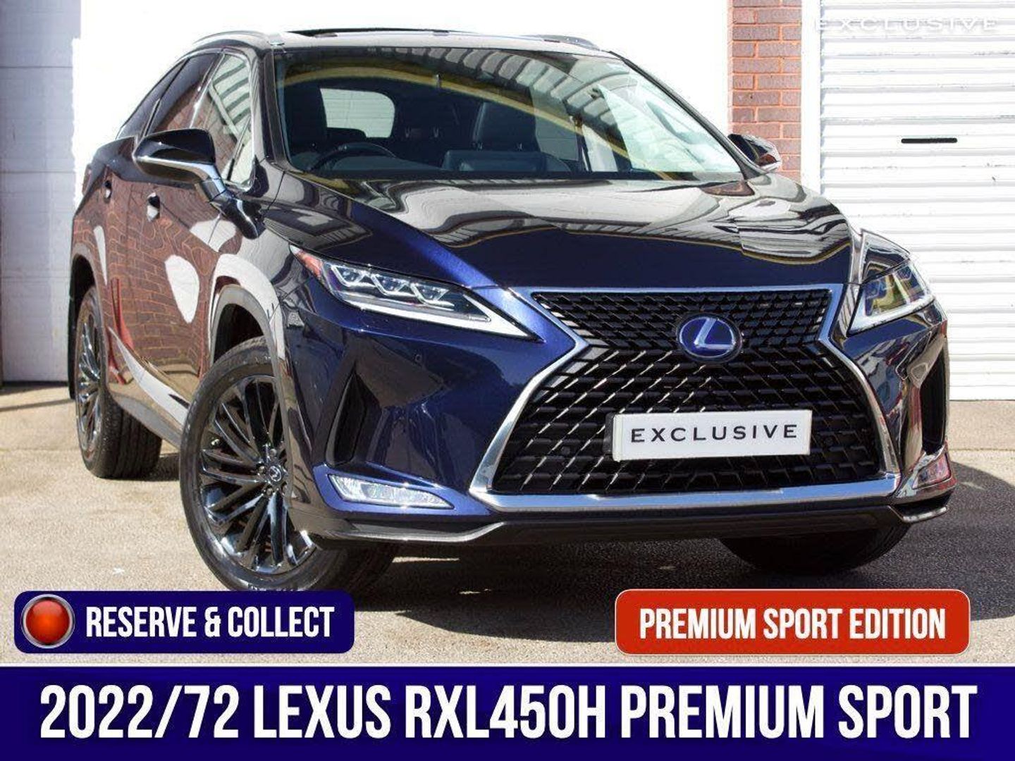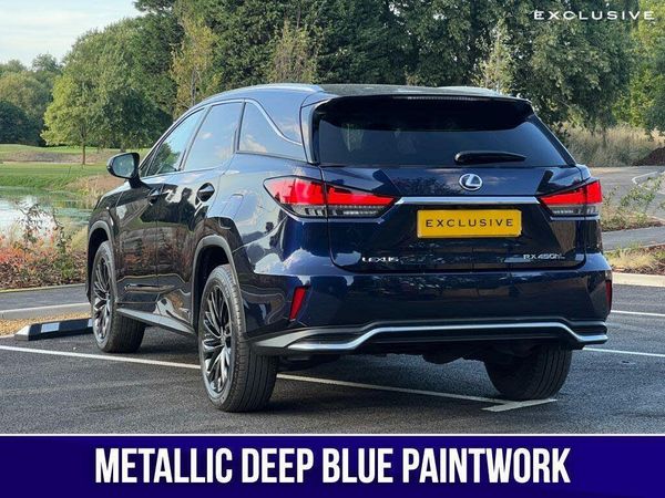 We are delighted to present this beautiful, low mileage Lexus RXL450h Premium Sport Edition benefitting from full Lexus service history . This vehicle is finished in the Metallic Deep Blue paintwork, complemented with the Black leather, and features an extensive specification such as: 20'' shadow chrome alloys, panoramic sunroof, satellite navigation, reverse camera, heated and cooled seats, heated steering wheel, blind spot monitoring, heads up display, rear cross traffic alert, 7 seat configuration, Apple CarPlay, Android Auto, and much more ; list price over £60,000 so therefore significant saving from new!---|--- For further peace of mind, this car is eligible for Lexus relaxed warranty until September 2032 or 100,000 mileage.Security recalls and tracker fitted carried out at the last service in 21st May 2025 ---|---The Premium Sport Edition has a powerful road presence thanks to black-finished details that complement its elegant lines, including the front grille and door mirror covers. These are matched with black sputtered-finish 20-inch alloy wheels and a black front under-guard that emphasises the models SUV status. In the cabin, the signature look for the smooth leather upholstery is a combination of black and white leather with contrast stitching. The same colour theme is applied to the soft-touch surfaces on the centre console, door trims and passenger knee pad, with the grey stitching repeated around the shift lever gaiter. The steering wheel is finished in black leather and Black Open Pore Walnut, matching the cabins wood trim inserts, and the door panels have integrated illumination. ---|--- This specification is in addition to the established RX Premium Pack, which provides Lexus Safety System+ active safety and driver assistance systems, smooth leather upholstery, heated steering wheel, heated and ventilated front seats, a hands-free power back door, door mirrors with auto-folding, auto-dimming, reverse-tilt and memory functions and power-adjustable front seats with an auto-retract and memory function for the drivers seat.,-20''|SUNROOF|PREMIUM SPORT PACK-EXCLUSIVE CLIENTS | EXCLUSIVE LIFESTYLES | EXCLUSIVE CARS