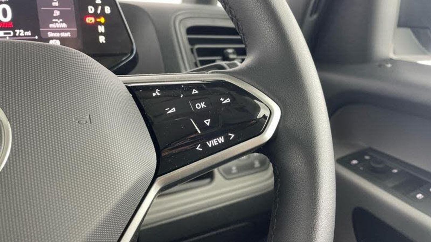 Metallic - Mono silver, Heat reflecting glass, Body coloured door handles, Autonomous emergency braking front assist with monitoring and braking for vehicles, pedestrians, cyclists, Intelligent Park Assist incl. Park Assist with memory function and Park Assistance Plus with park distance control, PAS, Folding door mirrors with front passenger lowering function, Driver and front passenger airbags, First aid kit with warning triangle and safety vest, Front passenger airbag deactivation, Seat belt reminder with electric contact in buckle, Tyre pressure monitoring system (TPMS), Car2X technology, Black decorative trim, Soul - soul dashboard, Single driver seat with manual height adjustment, 2 speakers (full-range), 2 USB-C ports in dashboard and 2 USB-C charging sockets in front, App-Connect incl. App-Connect Wireless for Apple CarPlay and Android Auto, Digital radio reception (DAB+), Discover Pro navigation with 10 screen, Carpet in Black, Illuminated mirrors in sun vinsors with airbag label on sun visor and B-pillar, Lockable glovebox, Steering wheel, dashboard and central controls in black, Anti-theft alarm system, interior monitoring in cab, back-up horn and towing protection, Keyless start incl central locking with two remote control folding keys incl interior control safelock and Illuminated door handle recesses, 11 kW AC charging power, Charging cable mode 3 type 2, 32 A (6 metres length), [Audio and Communications]eCall emergency system, We Connect preparation, [Drivers Assistance]Driver alert system, [Exterior]Heated windscreen, Body coloured bumpers, Unique ID Buzz badging, [Interior]Heated front seats, Door trim panel and armrest in plastic, Robust floor covering in cab, LED load compartment lighting, Wooden floor covering in load compartment, [Safety and Security]Electronic engine sound