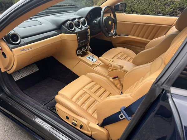 Finished in dark blue (Blu Pozzi) with beige “Daytona” pattern seats with dark blue carpets. Huge specification which includes the desirable HGT2 handling and aesthetic package; Modified sports exhaust with chrome exhaust tips,20” cast alloy ball polished “Challenge” style wheels, carbon ceramic brakes, “special management of the F1 transmission and suspension damping control”.
