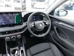 Wireless smartlink apple carplay, SmartLink+ android auto, Rear view camera with washer, Heated and ventilated front seats, Wireless charging for one smartphone (15W) with cooling function, Voice control system, Virtual Cockpit - 10.25" digital display, Turn assist with evasive assistance, Traffic sign recognition, Front cross traffic assist, Front assist with extended predictive pedestrian protection, Driver fatigue sensor, ChatGPT functionality, Blind spot detection with door exit warning, Adaptive cruise control with speed assist,lane assist plus and traffic tram assist, Web radio connection, DAB Digital radio, Windscreen wipers with rain sensor, Privacy glass, Frameless auto-dimming rear view mirror with USB-C, Electrically adjustable, heated, folding and driver side auto-dimming door mirrors with memory function, integrated indicators and logo projection, Dynamic range control with poor weather light and integrated fog light, Tri zone climate control, Isofix child seat fittings in outer rear and front passenger seats, 14-way electrically adjustable, memory, front seats with 4-way pneumatic lumbar support, and extendable thigh support with smart comfort entry aid, Transport package - Superb Estate, Light and view package - Superb, Power operated child lock in rear doors, Hill hold assist, Electronic parking brake, Keyless start/stop