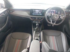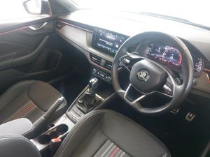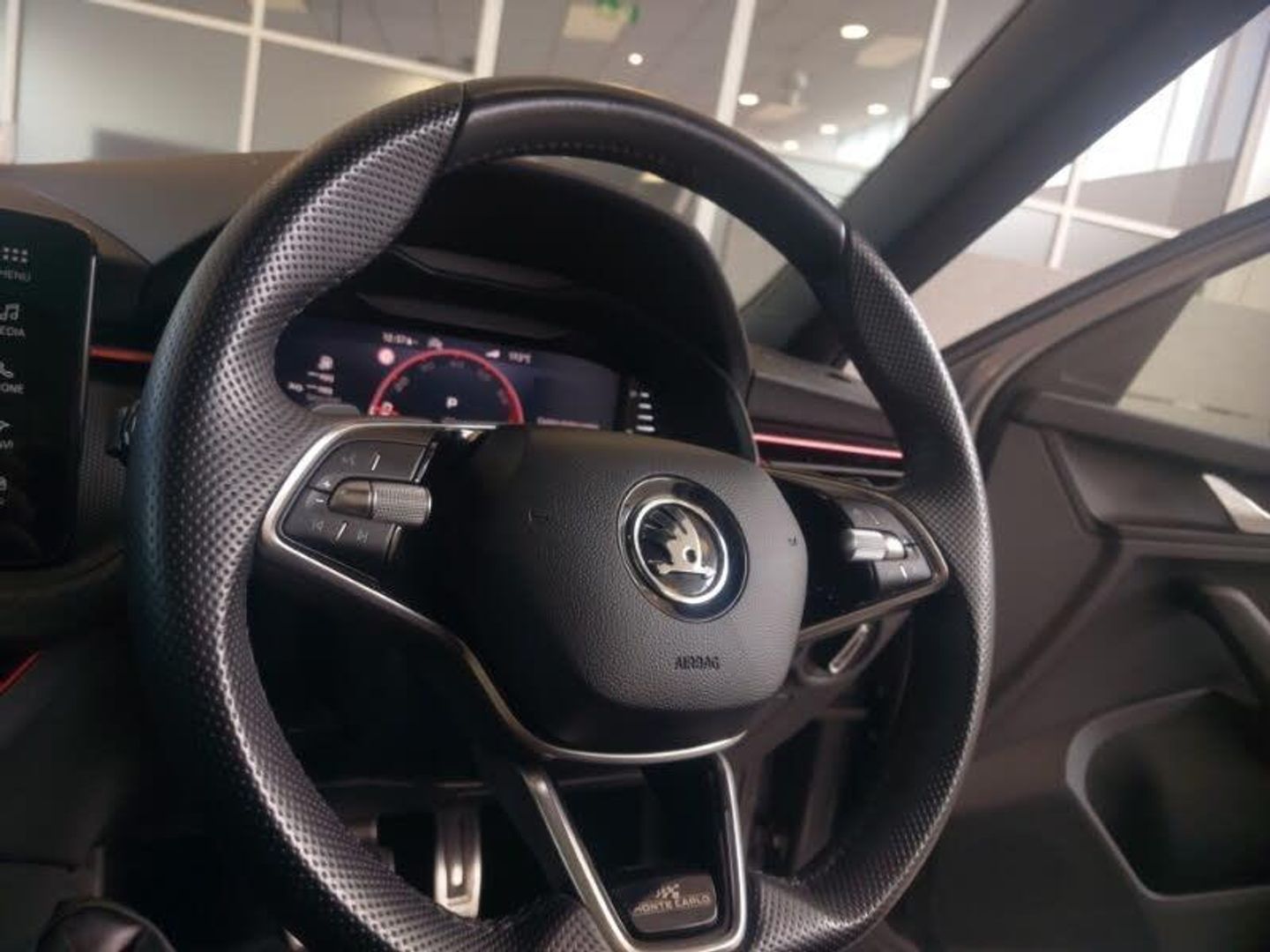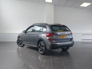 Advanced driver attention and drowsiness monitor, Bluetooth system, E-call, Front assist system, Rear parking sensors, Traffic sign recognition, Virtual cockpit with 10.25" display, Voice control system, Wireless smartlink, DAB Digital radio, 9.2" Skoda navigation display, Auto dimming rear view mirror, Automatic headlight control with coming home and leaving home feature, Automatic headlights, LED high beam, Panoramic sunroof with black roof rails, Monte carlo plaque, Privacy glass, Rear side wing doors, Isofix preparation for back seats, ISOFIX on front passenger seat, Dual zone climate control, Ambient lighting in white/red, Light and view plus package - Kamiq, Tyre pressure monitor, Hill hold control, 18" Ursa black diamond cut alloy wheels