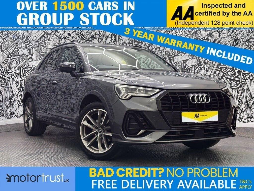 Experience Bold Style with this 2021 Audi Q3 1.5 TFSI CoD 35 Black Edition SUV Unleash dynamic performance and striking aesthetics with this 2021 Audi Q3 1.5 TFSI CoD 35 Black Edition SUV in Daytona Grey. Powered by a lively 150 ps 1.5-litre TFSI petrol engine with Cylinder-on-Demand technology, this Euro 6-compliant 6-speed manual delivers agile handling, reaching 0-62mph in 9.6 seconds, and excellent fuel efficiency of up to 47.9mpg (WLTP combined) with CO2 emissions of 135g/km, ideal for urban commutes or family adventures. With only 28,000 miles, full Audi service history, this 5-door SUV ensures ultra-low-mileage reliability and premium appeal, perfect for those seeking a blend of sophistication and practicality. Navigate seamlessly with MMI Navigation Plus, featuring a 10.1-inch touchscreen for precise directions, saving time in urban traffic or on unfamiliar routes. The Audi Virtual Cockpit, a 12.3-inch digital dashboard, offers customisable, high-resolution displays for driver-focused information. Stay connected with the Audi Smartphone Interface, supporting Apple CarPlay and Android Auto, and the Bluetooth Interface for hands-free calls and audio streaming, paired with voice control for effortless operation. Cruise control maintains steady speeds for relaxed, efficient long drives, reducing fatigue. The Black Styling Pack, with gloss black accents on the grille, window surrounds, and roof rails, amplifies the Q3's bold, sporty design, complemented by 19-inch alloy wheels. The premium interior features leather and Alcantara upholstery, with a 460-litre boot (expandable to 1,525 litres), ideal for families or professionals. With high-spec features like Virtual Cockpit, MMI Navigation Plus, and the Black Styling Pack, this Audi Q3 delivers exceptional value. Contact us today to arrange a viewing and experience its commanding presence firsthand! Welcome to MotorTrustUK, where exceptional standards and customer satisfaction are at the forefront of our service. All of our retail vehicles undergo a rigorous 128-point mechanical inspection, independently carried out by a qualified AA technician, to ensure the highest level of reliability and safety. Should any vehicle have less than six months remaining on its MOT or be due a service, these requirements will be addressed prior to delivery. For added reassurance, we include a complimentary nationwide warranty with all qualifying vehicles. With approximately 1,500 vehicles currently in group stock, a number that continues to grow, we are pleased to offer part exchange services, accept all major credit and debit cards, and provide flexible finance options, including HP, PCP, and subprime solutions. Nationwide delivery can also be arranged by quotation. While every effort is made to ensure accuracy in vehicle specifications and descriptions, details may vary; we encourage all customers to speak with a member of our sales team to confirm key information such as MPG figures, available keys, or any factory modifications. To ensure smooth processing and support, an administrative fee is applied to all completed sales. We look forward to assisting you in finding your next vehicle with confidence at MotorTrustUK.