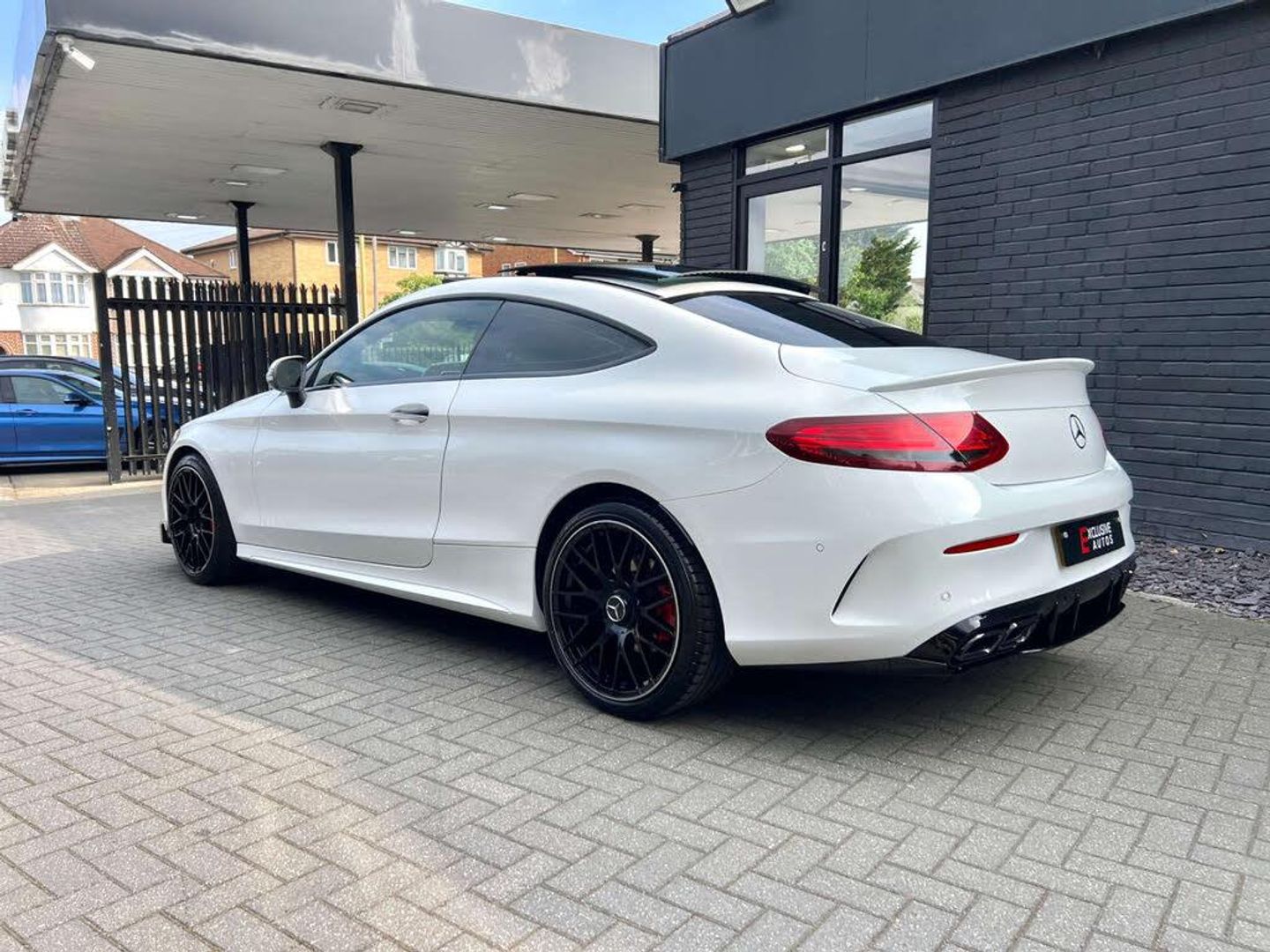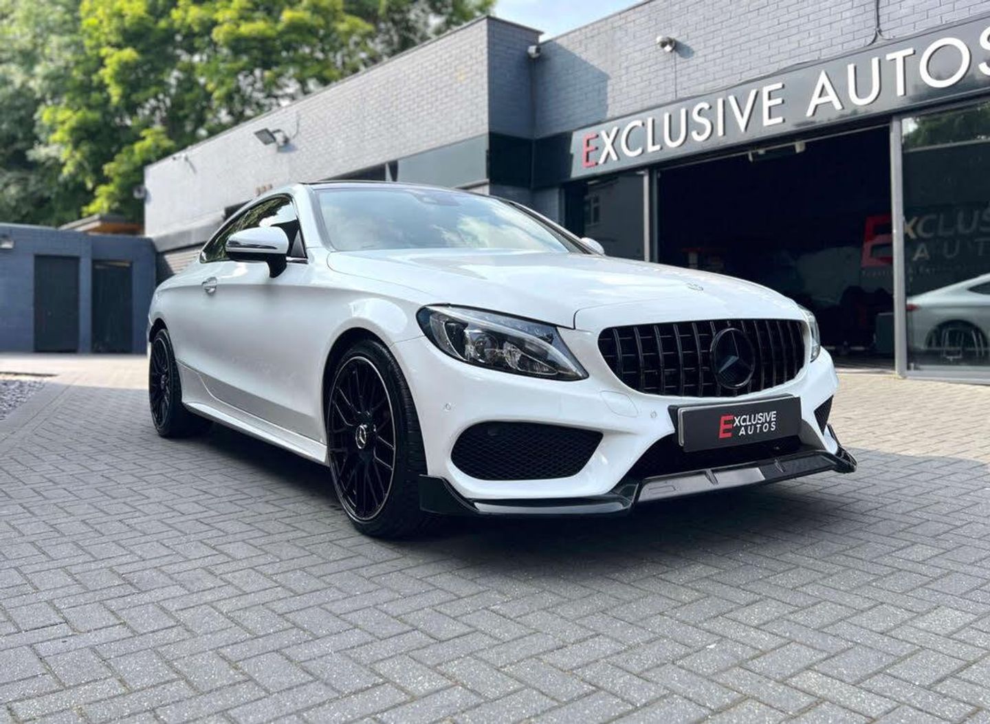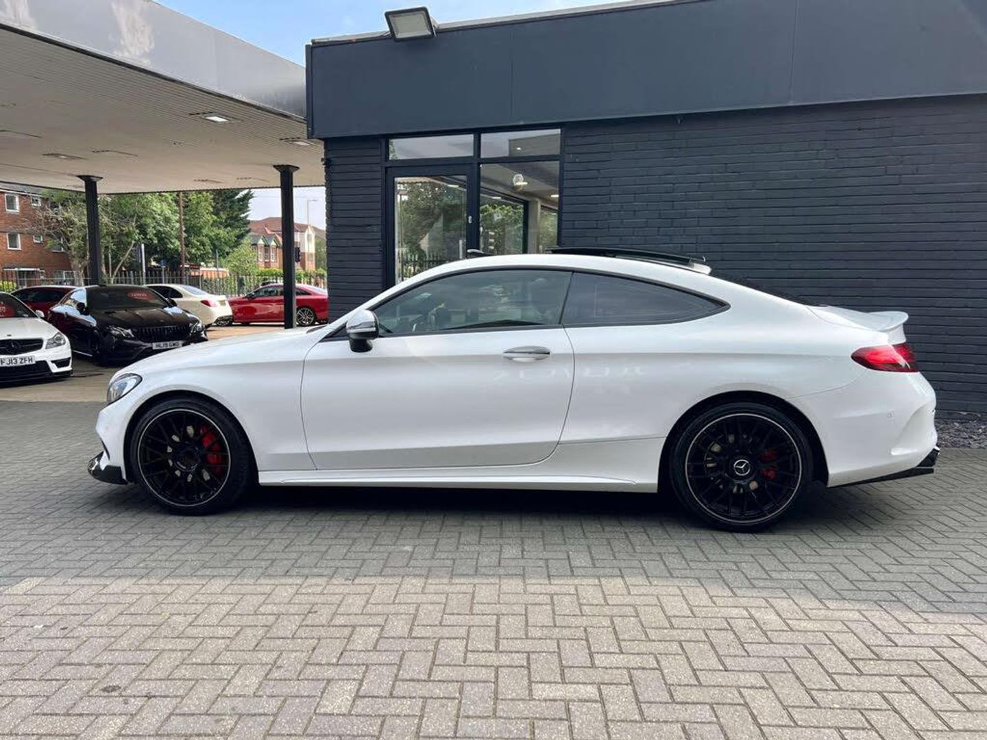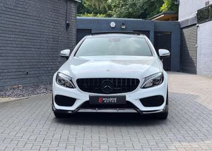 C63 AMG STYLE BODYKIT + PANORAMIC GLASS SUNROOF + SAT NAV + BLUETOOTH + 19" BLACK ALLOYS + DAB RADIO + PARK SENSORS + BLACK LEATHER SEATS + RED BRAKE CALIPERS + BLACKOUT EXTERIOR STYLING + HEATED ELECTRIC SEATS + KEYLESS PUSH START + DIGITAL DUAL CLIMATE CONTROL + AUTO/ PADDLES ON STEERING
