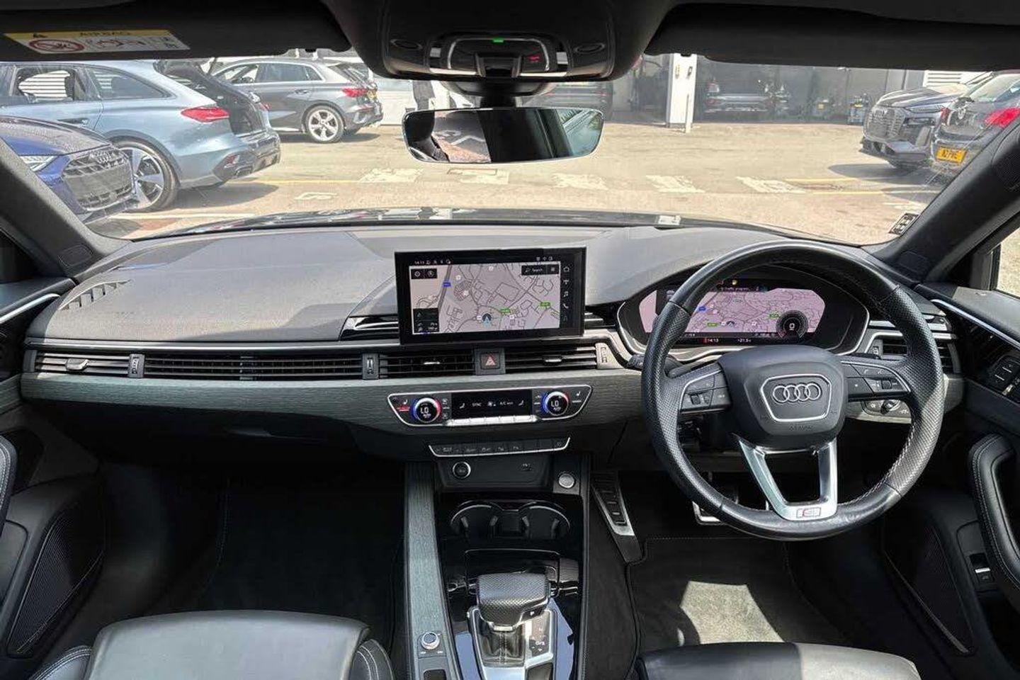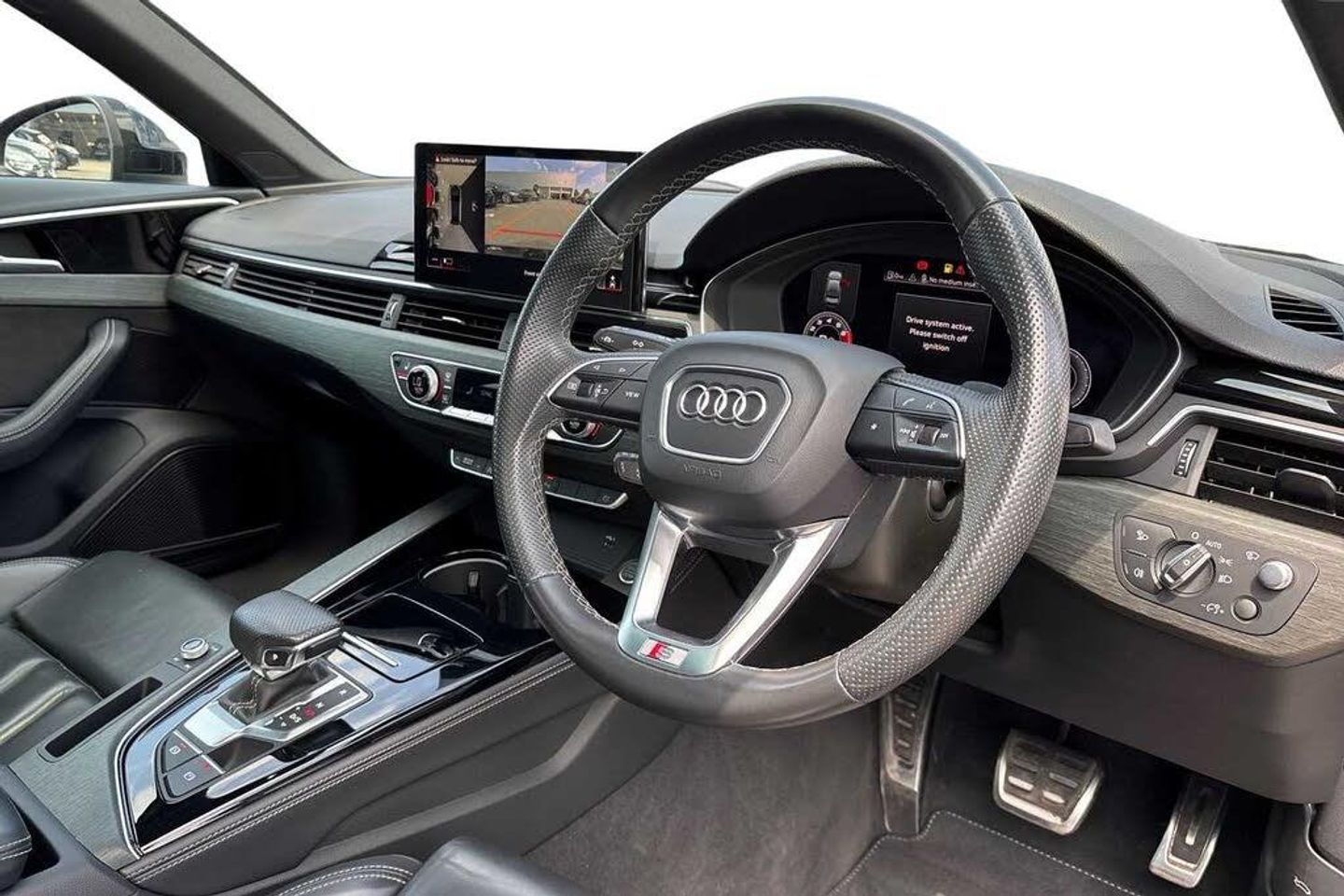 360-degree cameras (KA6), Ambient Lighting package plus (QQ2), Audi active lane assist (6I1), Audi adaptive cruise control (8T8), Audi phone box Light (9ZV), Audi pre sense rear and basic (7W3), Bang & Olufsen Premium Sound System with 3D sound (9VS), Camera-based traffic sign recognition (QR9), Comfort key with SAFELOCK (4F2), Exterior mirrors, power-adjustable, heated and folding, auto-dimming on both sides, with memory feature (6XL), Fine Nappa leather with embossed "S" (N3M), Headlamp washer system (8X1), Head-Up Display (KS1), Interior elements in leatherette (7HB), Lane change assistant (7Y1), LED rear combination lamps with dynamic light design and dynamic turn signal (8VP), Matrix LED headlamps with dynamic light design and dynamic turn signal (8G4), Park assist with parking aid Plus (7X5), Pneumatically adjustable lumbar support with massage feature for the front seats (8I6), Power front seats with memory feature for the driver seat (3L4), Seat heaters in front and rear (4A4), Sports suspension with damper control (1BQ), With multifunction camera (QK1), Electric Sunroof