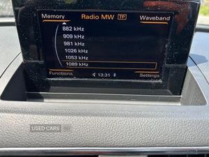 6.5" colour display screen, Bluetooth hands free telephone connection, Low washer fluid indicator, MMI - Multi Media Interface control system, On board computer, PAS, Service interval indicator, Voice control system, Audi music interface, DAB digital radio module, Speed dependent audio volume control, Acoustic windscreen, Body colour door mirrors, Coming home function, Door mirror integrated indicators, Front and rear electric windows, Front fog lights, Headlight range control, Heated windscreen washer jets, Light and rain sensor for auto activation of lights and windscreen wipers, Rear wiper, Sunband for windscreen, Towbar preparation, 12V power in rear centre console, Dual zone climate control, Front and rear headrests, Front and rear velour floor mats, Front centre armrest with storage compartment and angle adjustment, Height/reach adjust steering wheel, ISOFIX on front passenger and rear outer seats, Split fold rear seat, Tool kit, Top tether anchor plate for isofix child seat, Under floor storage in luggage area, 3x3 point rear seatbelts, ABS+Electronic Brake force Distribution, Curtain airbags, Driver and passenger airbags, Driver and passenger side airbags, EDL + ASR, Electrically operated child locks on rear doors, Electromechanical parking brake, ESP, First aid kit, Front passenger airbag deactivation, Seatbelt warning light, Tyre pressure monitoring system, Warning triangle, Locking wheel bolts, Remote central locking, Thatcham category 1 alarm + immobiliser, Diesel particulate filter, Dynamic suspension