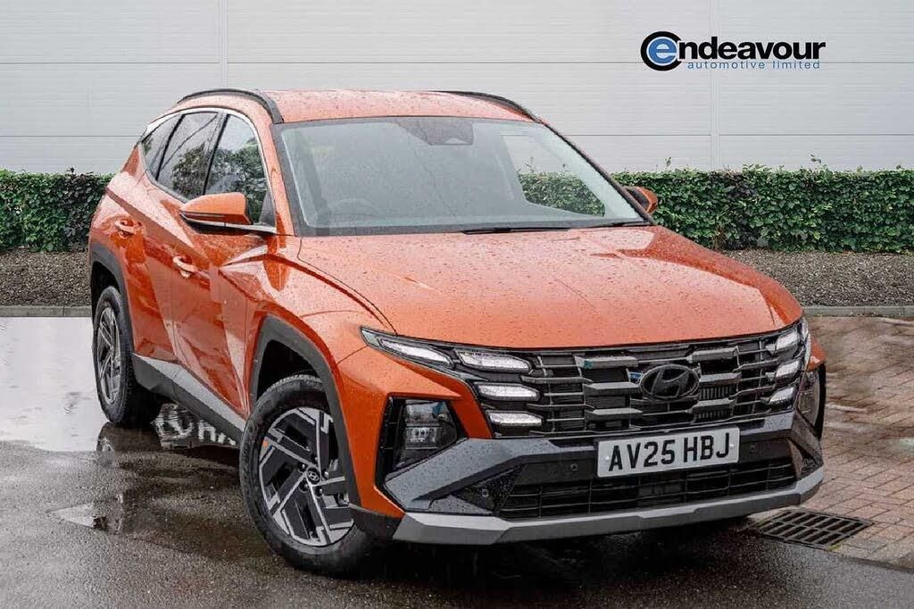 Exterior Features, Metallic paint, Paint - Metallic, Metallic - Jupiter Orange, Trim - Cloth, Premium cloth - Black, Exterior Features, Adjustable intermittent front windscreen wipers with aero wiper blade, Automatic defog system, Automatic windscreen wipers with rain sensor, Front and rear electric windows with anti-trap mechanism and one touch control, Privacy glass - Rear windows and tailgate, Rear wash/wipe with intermittent wipe setting, Tinted glass with windscreen shade band, Black wheel arches, Body colour bumpers, Body colour exterior door handles, Rear side wing doors, Roof rails, Soft touch rear door paneling, Automatic headlights with dusk sensor, Follow me home headlights, Front fog lights, LED 3rd brake light, LED daytime running lights, LED Headlights, LED rear lights, Positioning Lights - LED, Safety, Anti-lock brake system (ABS), Brake assist function, Downhill brake control, Electric parking brake, Electronic stability control, Hill start assist control (HAC), Multi-Collision braking, Traction control, Vehicle stability management, Cruise control, Drive mode selector, Driver attention warning, Emergency stop signalling system, Forward Collision Avoidance Assist (FCA) - Car, Pedestrian and Cycle, Front and rear parking sensors, Intelligent speed limit assist, Lane follow assist, Lane keep assist, PAS, Rear camera and guidance parking system, Auto dimming rear view mirror, Body colour door mirrors with integrated indicators, Electrically adjustable, heated and power folding door mirrors, 3x3 point rear seatbelts, Active bonnet, Airbag - Front, front side, curtain and centre front airbags, Childproof rear door locks, Curtain airbag roll over sensor, Front and rear seatbelt reminder, Front passenger airbag deactivation switch, Front seatbelt pretensioners, Outer rear seatbelt height adjustment, Seatbelt height adjustment for front seats, Tyre pressure monitoring system with individual tyre pressure display - TPMS, Audio / Communications, Bluetooth system, E-call, Voice recognition, Wireless Apple CarPlay/Android Auto, Wireless phone charging pad, 2 front and 2 rear speakers with 2 tweeters, 2 front and 2 rear USB-C ports, DAB Digital radio, Steering wheel mounted audio/phone controls, Driver Convenience, Hyundai road side assistance, Miscellaneous, 12.3" LCD display with driver's supervision instrument cluster, 12.3" widescreen navigation with bluelink and mapcare, Digital clock, Over the air updates(OTA), Rev counter, Tailgate open warning light, Trip computer, Trip odometer, Water temperature gauge, Windscreen washer fluid sensor and warning indicator, Interior Features, Dual zone climate control, Touch sensitive climate controls with temperature dials, 12V power outlets in front console and luggage compartment, Cupholders in rear armrest, Front and rear door pockets, Front armrest with storage box, Front centre console and door bottle holders, Height/reach adjustable steering column, Illuminated/air conditioned glove compartment, Leather wrapped steering wheel and gear knob, Luggage cover, Luggage hooks, Luggage net, Premium cloth upholstery, Retractable load cover, Sunglasses holder, Underfloor boot compartment, 64 colours interior ambient lighting, Door courtesy lights, LED interior lighting, Luggage compartment lighting, Map and reading lights, Driver and passenger sunvisors with illuminated LED vanity mirrors, Packs, Trailer wiring package - Tucson, Trim, 3 seat bench in 2nd row, 40/20/40 split folding rear seat, Adjustable head restraints (Up and down), Driver's seat manual height adjust, ISOFIX child seat anchorage points attached on outer rear seats, Manual height adjustable front passenger seat, Rear seat remote folding function, Reclining rear seats, Single front passenger seat, Security, Deadlocks, Immobiliser, Locking wheel nuts, Remote control central locking, Smart key with keyless entry and engine start/stop button, Speed sensitive auto door locking, Thatcham category 1 alarm, Towing, Trailer stability assist, Wheels, 17" Alloy wheels, Tyre repair kit