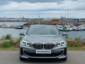 Android Auto, Apple CarPlay, Cruise control, LED daytime running lights, Speed limiter, Steering wheel audio controls, Rigidly mounted rear subframe - Multi link construction with separate spring / damper configuration and excellent driving characteristics, Pull away assistant, BMW Teleservices, Lane departure warning system, VALVETRONIC engine management, M sport suspension, Double VANOS twin scroll turbocharging system, Auto dimming rear view mirror, Automatic headlight beam throw control, Automatic windscreen wipers and automatic headlight, Chrome 'M' logo side designation, LED front fog lights, LED eyebrow turn indicators, LED daytime running lights, High gloss shadowline window frame, Recess cover mirror frames and B/C pillar embelisher trim, Green tinted heat protection glazing, Follow me home headlights, 3 spoke sports leather steering wheel with black leather and stitching, pearl chrome decorative finish, specific M Badge, Anthracite headlining, M Sport exterior styling aerodynamics pack - 1 Series, Cornering brake control, Remote control with integrated key with High-gloss Black inlay and M designation and 1 button for open/ close lock, window, open luggage compartment, Thatcham Cat.1 alarm and immobiliser, Contrast stitching on instrument panel, 18" Burnished M double spoke bi-colour alloy wheels finished in orbit grey - style 819M