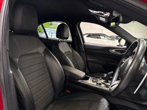 Anti-lock brake system, Immobiliser, Power assisted steering, Rain sensor, Remote central locking, Traction control, Trip computer, Front headrests, Adjustable headlights, Automatic headlights, Dual exhaust pipes, Electrochrome rear view mirror, Third rear headrest, Electronic Stability Programme, Aluminium kick plate, Boot light, Active cruise control, Dual zone climate control, Electronic parking brake, Steering wheel mounted audio controls, Dusk sensor, Child locks on rear doors, Automatic front windscreen wipers, 3x3 point rear seatbelts, Headlight washers, Sports leather steering wheel + gearshift, Lane departure warning system, USB port front armrest mounted, Stop/start system, Electrically adjustable and folding door mirrors, Dark headlining, Drive mode selector, Forward collision warning, Fix and go puncture repair kit, Gloss black side window surrounds, Autonomous emergency braking, Apple car play/Android Auto, Start button on steering wheel, Integrated brake system, Black painted interior bezels, Aluminium tunnel cover, dashboard insert and door handle surround, Alfa connect 3D NAV 8.8'' infotainment system, radio, 3D Sat Nav, MP3, TMC pro, USB, aux-in, bluetooth with 7 TFT instrument display panel, Digital Audio Broadcast radio-DAB, Bi-Xenon headlamps 25W + LED DRL, LED tail and brake lights, Aluminium metal sport pedals and footrest, Passenger seat airbag disable, English handbook, Tyre pressure monitoring system (TPMS), 12v socket in front, TMC Pro, Electrically operated tailgate, West European Map, Gloss Black sports exterior styling, SPRINT badging (front wing), Alarm system with bonnet and intrusion protection, Alfa connect box, USB in front centre console, Satin finish speaker surround system, Dark finish V grille, Dark finish Giulia badge, Monochrome central wheel caps, Additional soundproofing, Dark finish exhaust finisher, Parking assist pack - Giulia, Rear side wing doors, Rear boot, Front passenger seat, 3 individual seats in 2nd row