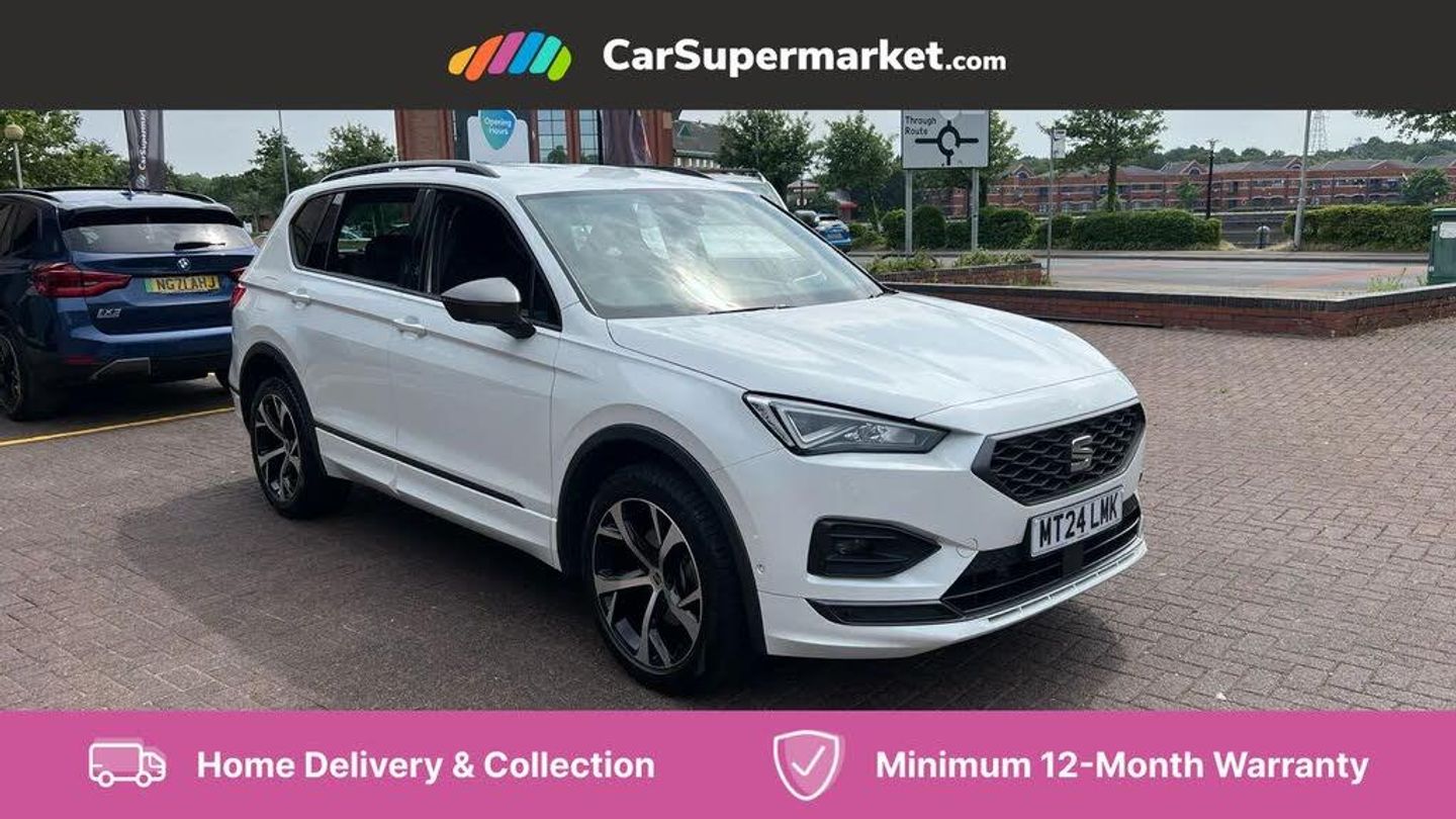 Digital Cockpit, Cruise Control, Adaptive Cruise Control, Bluetooth, Wireless Phone Charging, Apple CarPlay, Parking Sensors, Sat Nav, Android Auto, Electric Adjustable Seats and Mirrors, 19" Alloy Wheels;With only 4400 miles on the clock, this 2024 SEAT Tarraco is practically brand new. This FR trim model features a 1.5L petrol engine and meets the Euro 6 emission standards. The vehicle has a full service history, and its roadworthiness is guaranteed with an MOT valid until June 2027. The Tarraco EcoTSI EVO FR comes equipped with Adaptive Cruise Control, including a speed limiter, enhancing your driving experience. The seven seats indicate that this SEAT Tarraco is a great choice for larger families. The low mileage for its age, full service history, and long MOT indicate that this vehicle has been well-maintained and is ready for many more years on the road.