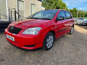 ********* SAME DAY FINANCE AVAILABLE ******** COMES WITH 03 MONTHS FREE WARRANTY ********* **********PERFECT EXAMPLE OF EXCELLENT CAR********* Another Perfect example of 2004 Toyota Corolla 1.4 T2 VVT-i SE Special Edition , Euro 4 ULEZ 5 dr Hatchback 97 bhp with Metallic Red Colour and Grey / Black Full Velour Interior which has just covered 48000 miles (warranted) .M A N U A L , 48000 Miles , 2004 TOYOTA COROLLA 1.4 VVT-i T2 SE Special Edition , 04 Reg , 5 dr Hatchback 97 bhp , 5 Seats , 04 Reg , Metallic RED Colour , Excellent Condition , Full Grey / Black Velour Interior , Power Steering , Remote Central Locking , Adjustable Steering Column / Wheel , Front and Rear Head Restraints , Immobiliser ,Front and Rear Fog Lights , Traction Control , Iso-fix child seat , A I R C O N D I T I O N I N G / Climate Control , Anchor Points , A B S ,Body colour Bumpers , Multiple Air - bags , Electric Mirrors , Radio / CD Player , Alloy Wheels , Just been Fully Valeted , Full Service History + Old m.o.ts to Prove Mileage , 4 Good Tyres , M.O.T Till NOVEMBER 2025 , Ideal First / Family Car , Very Clean in and out , Cheap to Run and insure , Cheap to Tax , Price for Quick sale .
