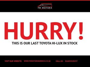 Just arrived what a lovely TOYOTA HI-LUX 2.4 D-4D Invincible Pickup Double Cab 4dr Diesel Auto 4WD Euro 6 (s/s) (150 ps) FULL SERVICE HISTORY, 2 Keys, HPI CLEAR, FINANCE AVAILABLE, LOW CREDIT SCORE! WE MAY STILL BE ABLE TO HELP , EXCELLENT EXTENDET AA WARRANTY OPTION, 12 MONTHS AA BREAKDOWN COVER INCLUDED DOMESTIC USE ONLY, ALL CARS - VANS ARE READY TO DRIVE AWAY, 5 DAY DRIVE AWAY INSURANCE AVAILABLE, RESERVE THIS VEHICLE EXCLUSIVELY FOR YOU SAFELY AND SECURELY AT WWW.FMMOTORSNORWICH.CO.UK WITH FULLY REFUNDABLE £100.00 DEPOSIT. ACT FAST WON'T HANG AROUND LONG!!! OVER 50 QUALITY USED VEHICLES ON WEBSITE AT WWW.FMMOTORSNORWICH.CO.UK AA APPROVED, ALL OUR VEHICLES ARE INSPECTED AND HPI CHECK CLEAR,