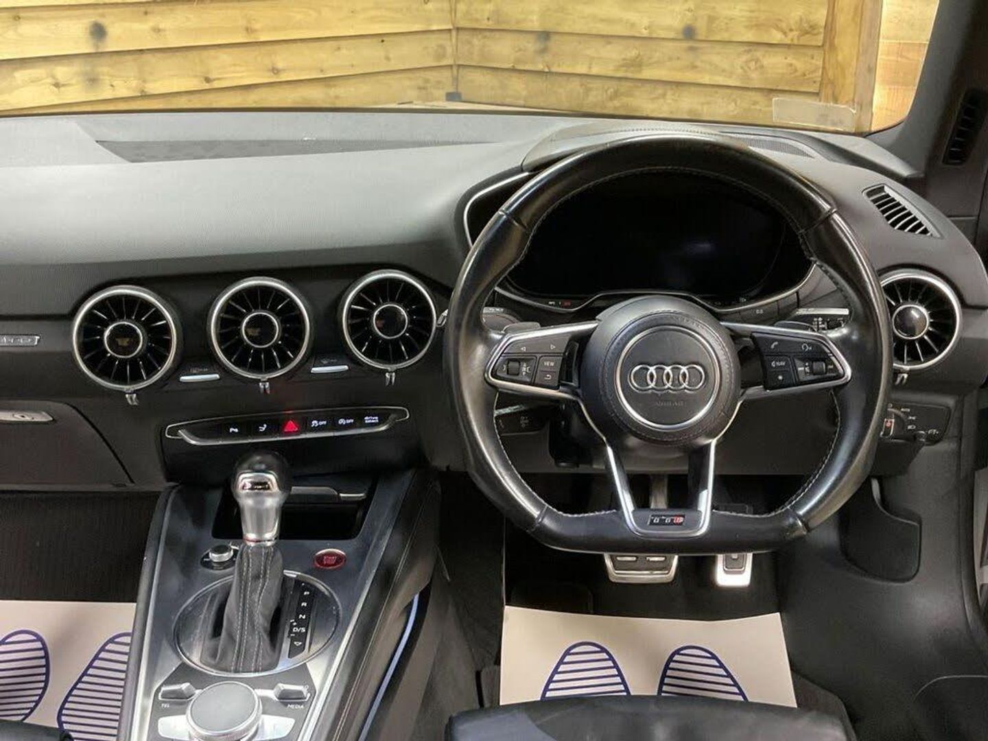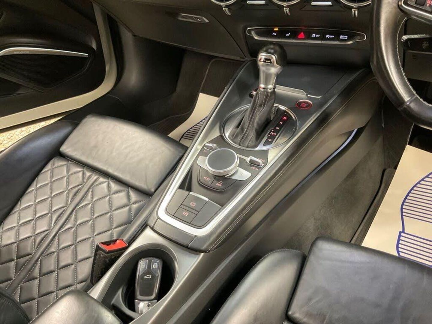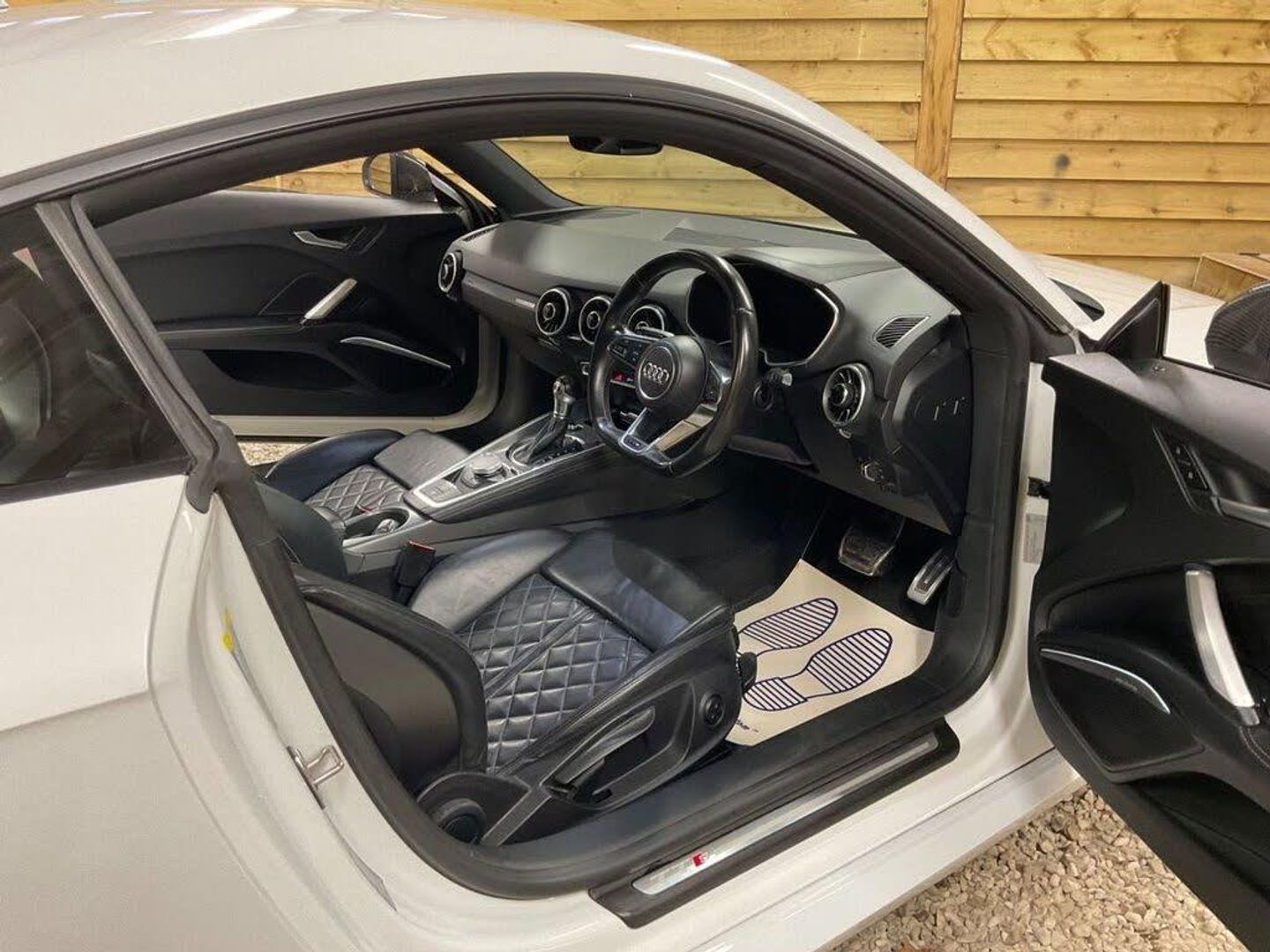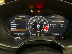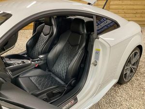 12V Power Socket, 19in Alloy Wheels - 5-Parallel Spoke Star Design, 2 x SDXC Card Readers, ABS - Anti-Lock Braking System, Active Door Reflectors, Air Conditioning, Airbags - Driver, Airbags - Front Passenger, Airbags - Front Side System, Airbags - Head System, All Weather LED Headlights, Aluminium-Effect Door Mirror Housings, AMI - Audi Music Interface, Amplifier - 5-Channel, Anti Theft Locking Wheel Bolts, Anti-Glare Illumination for Passenger Compartment, Anti-Theft Alarm, Armrest Doors - Leather, Audi Active Lane Assist, Audi Drive Select, Audi Magnetic Ride, Audi Sound System, Audi Virtual Cockpit with a 3rd TTS Specific Screen, Audio Output - 155 Watts, Auto-Dimming Rear-View Mirror, Auto-Dimming Rear-View Mirror with Light and Rain Sensor Package, Automatic Wipers with Rain Sensor, Bluetooth Audio Streaming, Brake Calipers - Black with TTS Logo, Brake Lights - LED, Bumper - Front TTS Specific with Accentuated Side Air Inlets with Horizontal Aluminium-Look Slats and Side Sill Trims, Bumper - Rear TTS Specific in Body Colour, Car Jack, DAB Digital Radio, Diffuser - Rear - Insert in Platinum Grey with Surround in Aluminium-Look, Door Handles - Leather, Door Mirrors - Built-in LED Side Indicators, Door Mirrors - Electrically Adjustable and Heated, Door Sill Trims with Aluminium Inlay and TTS Logo, Dynamic LED Indicators - Rear, Electric Windows - Front, Electrically Adjustable 4-Way Lumbar Support, Electromechanical Parking Brake, ESP - Electronic Stability Programme, Exhaust Tailpipe - Dual Chrome - 2 Each Side, Extended Leather Package, First Aid Kit, FM-AM Radio, Front Passenger Airbag Deactivation Switch, Fuel Computer, Google Earth Images and Google Street View, Headlights - Automatic Range Adjustment, Headlights - Coming-Leaving Home Function, Headlights - Light Sensor, Headlights Washers, Headlining - Black, Heated Front Seats, Illuminated Footwells, Illuminated Inside Door Openers, Inlays - Matt Brushed Aluminium, Instrument Panel Cover - Leather, Integrated Head Restraints, Interior Elements in Quartz Fine Lacquer Anthracite, iPod Connection, ISOFIX Child Seat Mounting for Front Passenger, ISOFIX Child Seat Preparation for Rear Seats with Top Tether, Keyless Go, Leather Door Trim Inserts, LED Daytime Running Lights, LED Interior Light Package, LED Rear Lights, Light and Rain Sensor Package, Manual Front Seat Adjustment, MMI Radio, MMI Touch, Mobile Telephone Preparation - Bluetooth Interface, Non-Smoking Package, Pedals in Stainless Steel, Pollen Filter, Progressive Steering, Radiator Grille - Platinum Grey with Horizontal Double Struts in Aluminium-Look and TTS Emblem, Remote Central Locking, S Design Body Styling, Seat - Side Bolsters in Leather, Seats - Centre Sections in Selected Leather with Diamond Quilting, Seats - Extendable Thigh Support, Seats - Super Sports, Speakers x1 - Centre of Dashboard, Speakers x2 Woofers, Speakers x6 - Active, Split-Folding Rear Seats, Spoiler - Retractable, Steering Wheel - 3-Spoke Leather-Flat Bottomed-Sports-Contoured, Steering Wheel - Gear Shift Paddles, Steering Wheel - Height and Reach Adjustable, Steering Wheel - Multi-function, Steering Wheel - Sports, Steering Wheel - TTS Badging, Sunband for Windscreen, Tool Kit, TP Memo - Automatically Saves Traffic News, Traction Control, Trim on the Centre Console in Black Leather, TTS Badges on Front Wings, Tyre Pressure Loss Indicator, Tyre Repair Kit, USB Connection, Warning Triangle