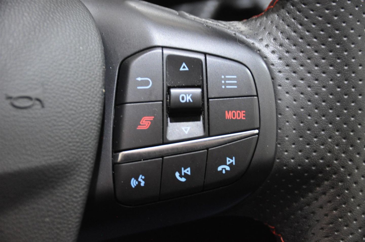 ►Leather 3-spoke Sports Steering Wheel with New Sport Mode Button
