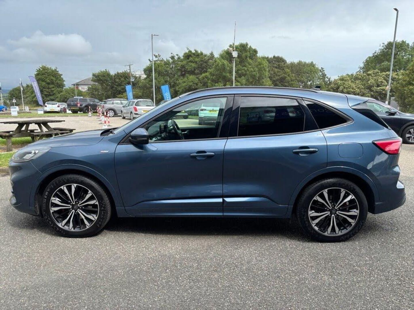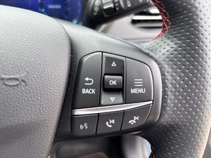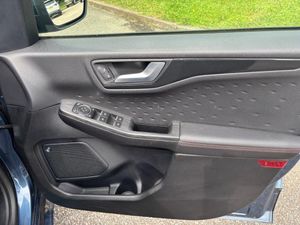 10-Way Power Adjustable Drivers Seat, 12V Power Point in Floor Console, 12v Power Point in Cargo Area, 12v Socket - Voltage Regulator, 19in Alloy Wheels - 5x2 Spoke - High Gloss - Machined, 2nd Row Sliding Seats with 60-40 Split, 8-Way Manual Passenger Seat including Lumbar Support and Height Adjust, Airbag - Driver and Front Passenger Side, Airbag - Front Passenger Deactivation Switch, Airbags - Driver and Front Passenger, Airbags - Front and Rear Side Curtain, Alloy Pedals, Aluminium - Finish Front Scuff Plates with ST-Line Script, Ambient Lighting, Auto Dimming Rear View Mirror, Auto Wipers, Automatic Door Relocking, Automatic Headlights with Auto High-Low Beam, B and O Premium Audio System with Large Instrument Cluster, Black Roof Rails, Centre Console with Electronic Parking Brake, Cruise Control with Adjustable Speed Limiter, Dark Headliner and Pillars, Driver and Passengers Sun Visor with Illumination, Dual Exhaust Tailpipes with Unique Brushed Stainless Steel Finish, Dual Zone Electronic Automatic Temperature Control - DEATC, EPAS - Electric Power Assisted Steering, ESC - Electronic Stability Programme and ABS - Anti Lock Braking System, Engine Immobiliser - SecuriLock, Exterior Door Handles - Body Coloured, Flat Bottom Steering Wheel in Sensico with Red Stitching, Floor Mats - Front and Rear - ST-Line, Ford Easy Fuel System, Ford Key Free System with Ford Power Start Button - Keyless Start, FordPass Connect, Front LED Fog Lights with Cornering Function, Front Seats - 2-Way Manual Height Adjust Passive Head Restraints, Front Seats - Drivers and Passengers Seatback Map Pockets, Front Windows - Laminated Glass, Front and Rear Bumper - Sporty Body Colour with Rear Ebony High-Gloss Insert, Front and Rear Parking Sensors, Full Digital 12.3in Instrument Cluster, Full LED Headlamps, Gear Shift - Unique Leather Trimmed Knob with Satin Aluminium Insert and Red Gaiter Stitching, Glovebox Lights, Handsfree Power Tailgate, Headlights - Automatic Follow Me Home Lighting, Headlights - Unique Bending, Heated Driver and Passenger Seats, Heated Rear Seats, Heated and Power Folding Door Mirrors with Puddle Lights, High-Mounted Brake Light, Intelligent Speed Assist, Kuga Badge, LED Daytime Running Lights, Lane Keeping Aid with Lane Departure Warning, Large Rear Spoiler, Load Compartment - Lights, Load Compartment - Tie Down Hooks, Load Compartment Carpet, Locking Wheel Nuts, Lower Bodyside Moulding - Body Colour, Lower Door Frame Beltline - Black, Manual Childproof Locks on Rear Doors, Mini Overhead Console with Sunglasses Holder Bin, Mobile Phone Wireless Charging Pad, MyKey Gen II, Post Collision Braking, Power Door Deadlocks - Double Locking, Power Door Locks, Power Front and Rear Windows with Shot up and Down - One Global Closing, Power Opening Panoramic Roof, Pre-Collision Assist with Autonomous Emergency Braking - Camera Detection, Privacy Glass, Quickclear Heated Windscreen, Rear Lights - LED, Rear Seat Centre Head Restraint, Rear Seats - 2-Way Head Restraint Up-Down, Rear Seats - Folding Centre Armrest with Integrated Cup Holder, Rear Seats - Sliding Seat Adjust Tracks - Fore-Aft, Rear View Camera, Red Brake Calipers, Remote Power Central Double Locking Doors, Remote Tailgate Release, Removable Package Tray, Rocker Panel Mouldings - Body Colour - ST-Line Design, ST-Line Badge on Left and Right Side Wings, ST-Line Bodystyling Kit, ST-Line Front and Rear Bumper Moulding - Body Colour, ST-Line Leather Gear Knob, Satellite Navigation - Navigation Center, Seat Belt - Drivers - Front Passenger and Rear Seat Belt Reminder Alert, Seat Belts - Front 3-Point Seatbelts with Load Limiter, Seat Belts - Front Height Adjustable, Seat Belts - Rear Retractable Rear Belt - 3-Point All Positions, Seats - ISOFIX Mounting Provision for Child Seats - Outer Seats Only, Selectable Drive Modes, Sports Seats, Standard Duty Suspension, Steering Column - Locking Electric, Steering Column - Rake and Reach Adjustment, Tailgate Handle - Body Colour, Tether Anchorage - Two Rear Seat Top Tether Anchorage Restraints, Thatcham Category 1 Perimeter and Volume Sensing Alarm, Tow Hooks - Front and Rear, Trip Computer, Twin Exhausts, Tyre Inflation Kit, Tyre Pressure Monitoring System, Upper Door Frame Beltline - Black, Wiper - Intermittent Rear Window Wiper, Wrong Way Alert, Chrome Blue, Partial Sensico - Rapton Cloth - Ebony with Red Stitching