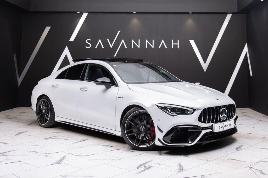 MERCEDES-BENZ CLA 2.0 CLA45 AMG S Plus Coupe 4dr Petrol 8G-DCT 4MATIC+ Euro 6 (s/s) (421 ps) is a truly exhilarating performance coupe finished in stunning Digital White with striking 19-inch AMG forged cross-spoke alloy wheels and the aggressive AMG Aerodynamics and Night Packages enhancing its assertive presence. The flared AMG wings, wider side skirts, distinctive AMG-specific grille, and panoramic glass roof complete the unmistakably sporty exterior. Step inside to a premium cabin appointed in black leather with AMG Performance Seats, illuminated door sills, a multifunction AMG Performance steering wheel in Nappa leather and DINAMICA microfibre, and a sweeping dual 10.25-inch digital display with MBUX multimedia and hard-disk navigation. Ambient lighting with 64 selectable colours, THERMOTRONIC dual-zone climate control, and a high-gloss black roof lining create a cockpit that's both dynamic and luxurious. Driving dynamics are controlled with AMG Dynamic Select, including a Race mode, AMG Performance 4MATIC+ with torque control, adaptive suspension, and an AMG high-performance braking system with red calipers. Safety and convenience are paramount with Blind Spot Assist, Active Lane Keeping Assist, Traffic Sign Assist, the Parking Package with reversing camera, KEYLESS-GO, and smartphone integration via Apple CarPlay and Android Auto. The AMG Real Performance Sound exhaust system with quad tailpipes delivers an audible thrill to match its 421hp output. At Savannah Cars, we specialize in Performance, Prestige, and 4X4 vehicles. Meticulous preparation is the cornerstone of our service; every car undergoes a thorough mechanical and cosmetic inspection to meet the highest standards. Each vehicle is subjected to a comprehensive, independent multi-point check. Our dedicated team diligently researches the market to ensure we offer the best value. While we take pride in our careful attention to vehicle specifications, we strongly encourage customers to conduct their own research to verify these details. We strive to provide a seamless buying experience, offering award-winning warranty options, finance solutions, paint protection, and a minimum of 6 months MOT. Viewings are welcome 7 days a week, with appointments recommended. Live HD video viewings are available upon request. Contact our dedicated Sales Team at 01702 335709 for assistance.