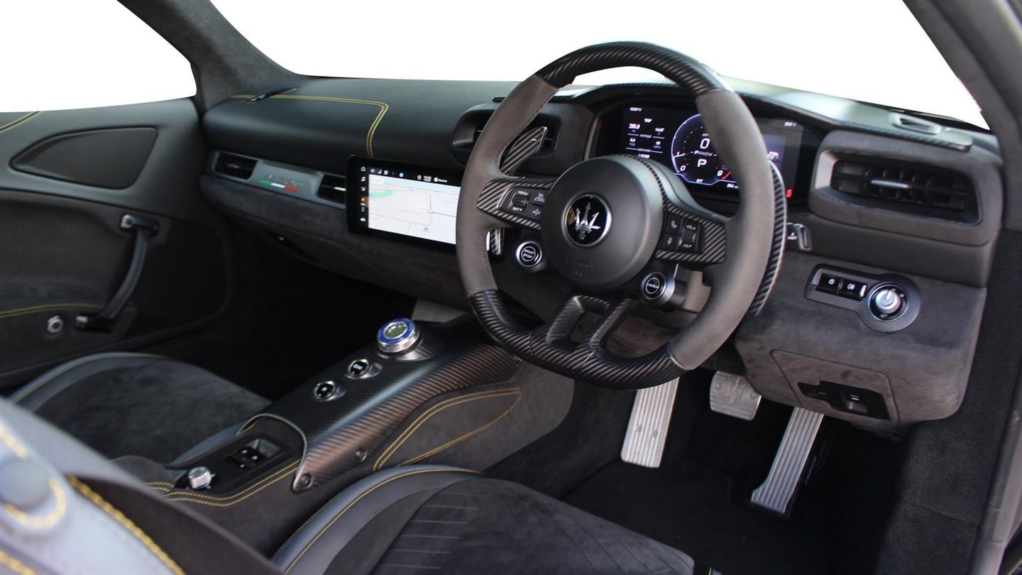 20" Birdcage Black Diamond Cut Alloy Wheels,6 Way Electric Sport Seats,Carbon Macrotwill Interior Trim,Trident Stitched Headrests,Interior Carbon Fibre Package,Exterior Carbon Fibre Package,Suspension Lifter,Black Brake Calipers,Alcantara Steering Wheel With Carbon Inserts,Heated Front Seats,Maserati Warranty Until January 2027 Unlimited Mileage