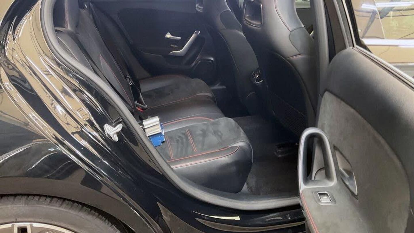 Cosmos Black, Artico Leather-Dinamica Microfibre - Black with Red Contrast Stitching, 18in Alloy Wheels - AMG 5-Twin-Spoke Design - Painted in Titanium Grey with a High Sheen Finish, ABS - Anti-Lock Braking System with BAS - Brake Assist, AMG Bodystyling - Front and Rear Apron and Side Skirts, ATTENTION Assist, Active Bonnet - Pedestrian Safety Measure which Detects an Impact and Raises Bonnet by 65mm, Active Brake ASSIST, Active Lane Keeping Assist, Adaptive Brake Assist with Hold Function and Hill Start Assist, Adaptive Brake Lights, Air Conditioning - THERMOTRONIC Luxury Automatic Climate Control - Two-Zone with Display, Air Vents with Surround and Cruciform Nozzle in Silver Chrome, Airbag - Kneebag for Driver, Airbags - Dual Stage - Driver and Front Passenger, Airbags - Head and Sidebags - Driver and Front Passenger, Airbags - Windowbags for Driver and Front Passenger, Alarm System with Immobiliser and Interior Protection - Thatcham Category 1, Automatic Child Seat Recognition Sensor, Beltline Strips - Chrome, Bodystyling - Side Skirts - Body-Coloured, Brake Calipers - Mercedes-Benz Lettering on Front, Brake-Pad Wear Warning Indicator, Brushed Stainless Steel Sports Pedals with Rubber Studs, Bumpers - Body Coloured, Centre Armrest - Front with Stowage, Childproof Locks - Manually Operated for Rear Doors and Electrically Operated for Rear Power Windows, Chrome Weather Strip, Colour Inserts in Air Vents, Controller on Centre Console with Chrome Surround, Crash-Responsive Emergency Lighting, Cruise Control with Limiter, Cup Holder - Double - Front, DAB Digital Radio Tuner, Direct Steer Speed-Sensitive Power Steering, Direction Indicators with Lane-Changer Function, Door Handles - Body Coloured, Door Mirrors - Electrically Adjustable and Heated with Integrated LED Indicators, Dual Bluetooth Interface - 2 USB Ports - Type C, Dynamic Select with a Choice of Driving Modes - ECO-Comfort-Sport and Individual, ESP - Electronic Stability Programme with ASR - Acceleration Skid Control, ESP Curve Dynamic Assist, Electric Parking Brake, Electric Windows - 4, Exhaust System - Twin Trapezoidal Tailpipes in Polished Stainless Steel, First Aid Kit and Warning Triangle, Floor Mats - Red Stitched Edging - AMG Lettering, Footwell Lights in Front, Front Door Sills with Mercedes-Benz Lettering, Glass - Rear Windscreen - Heated with Timer Control, Glove Compartment - Illuminated, Hard-Disk Navigation, Headlamp Assist - Automatic Headlamp Activation, Hey Mercedes - Voice Activation, High Level Third Brake Light - LED, ISOFIX and Top-Tether Child Seat Fixing Points in Rear - Two Outer Seats, Instrument Cluster - Fluid Level Warning Indicator for Fuel - Oil - Coolant and Washer Fluid, Instrument Cluster - Outside Temperature Display, Instrument Cluster - Service Indicator ASSYST, Instrument Cluster - Trip Computer in Multi-Function Display with Current Fuel Consumption Indicator, Instrument Display - 7in Display, Interior Lighting - Reading Lamp in Rear in Support Plate - Rear-Left-Right, Interior Lighting - Reading Lamps - Front-Left-Right - Console Downlighter, Interior Lighting - Cup Holder - Stowage Compartment Lighting, Interior Lighting - Handle Recess - Closing Handle - Front-Rear-Left-Right, Interior Lighting - Oddments Tray, Interior Lighting - Signal Exit Lamp - Front-Left-Right, Interior Lighting - Signal and Ambient Lamp, Interior Lighting - Touchpad, Interior Lighting - Vanity Lights - Front-Left-Right, KEYLESS-GO Starting Function, LED High Performance Headlamps with Integrated LED Daytime Running Lights, LED Tail Lights, Light Failure Indicator, Live Traffic Information, Luggage Compartment Cover, Luggage Nets on Driver and Front Passengers Backrests, MBUX Multimedia System, Media Display - 7in Touch Screen Display, Mercedes Me Connect - Standard Services, Radiator Grille - Diamond with Pins in Chrome and Silver Louvre with Chrome Insert, Radio Aerial Roof Spoiler, Rain-Sensing Windscreen Wipers with Two Sensitivity Settings, Rear Fog Light, Rear Windscreen Wiper, Remote Central Locking and Crash Sensor with Emergency Opening Function, Reversing Camera with Parking Guidelines - 180 Degree View, Roof Lining - Black, Seat Belts - Rear Three-Point - 3, Seat Belts Reminder - Front and Rear, Seat Comfort Package, Seat Occupancy Sensor - Front Passenger Seat, Seats - Front Cushion Length Adjustment, Seats - Front Manually Adjustable, Seats - Rear Seat Backrests - Split Folding 1-3 - 2-3, Speed Limit Assist, Sports Seats with Integrated Head Restraints, Sports Suspension - Lowered, Steering Column - Manually Adjustable for Height and Reach, Steering Wheel - 3-Spoke Multi-Function - Trimmed in Leather with Perforated Leather in Grip Area and Flattened Bottom Section, TIREFIT Tyre-Sealant Kit, Touchpad on Centre Console, Trim - DINAMICA Microfibre, Tyre Pressure Monitoring System